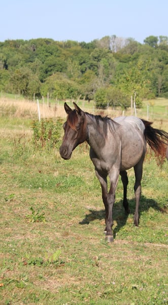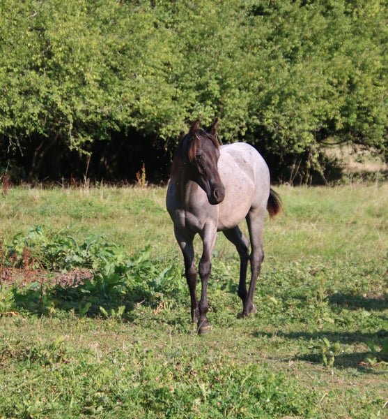 Die kleine Peppy Knight O Lena ist ein ganz aufgeschlossenes, liebes Quarter Horse mit toller, begehrter Färbung (blue roan). Die Stute ist 4.24 geboren und wird ein geschätztes Endmaß zwischen 147 und 153 cm bekommen. Die Kleine hat eine tolle Reining/Ranch Riding/Allround Abstammung. Hancock, Wimpys Smoking gun, Wee Lenas Jac, Peppy San Especial im Pedigree. Peppy Knight O Lena liebt ihre Streicheleinheiten, lässt sich brav halftern und ist ganz lieb im Umgang. Wächst artgerecht mit Gleichaltrigen auf und ist gesund (5-Panel und Imm n/n über die Eltern). Bei Abgabe kennt sie das Fohlen ABC, ist altersentsprechend entwurmt und geimpft und hat Papiere von der AQHA sowie einen Equidenpass. Die Stute ist eine tolle Bewegerin und später gut geeignet für Sport/Turnier aber auch als Freizeitpartner. Anschauen, verlieben und mitnehmen.