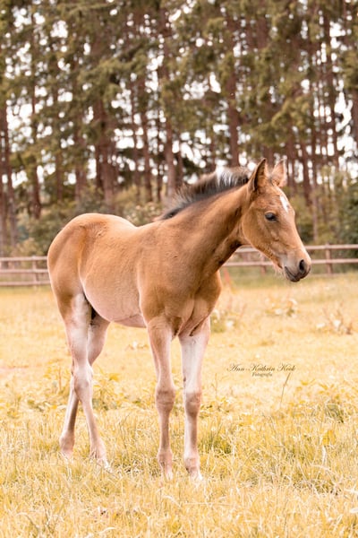 Polly is a very outgoing and affectionate filly from successfully shown parents. She is halter-trained and familiar with the basics of foal handling. Her 3-year-old full sister and parents can also be viewed. She is eligible to compete in NRHA Germany and Belgium. EWU can be paid in upon request. The price is a weaning price. Please feel free to contact us with any further questions.