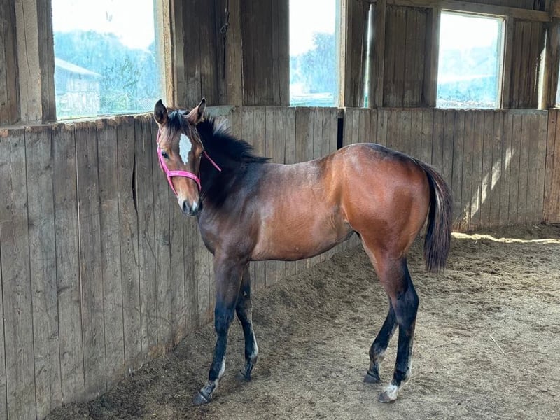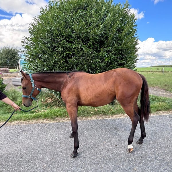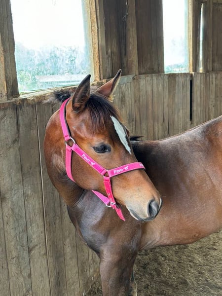 My Blue Charm - die am 01.03.2024 geborene Quarter Horse Stute ist ein echtes Nachwuchstalent mit bester Allround- und Pleasure-Abstammung. Sie ist aktuell ca. 145 cm groß und wird voraussichtlich ein Endmaß von etwa 155-160 cm erreichen. Mit ihrer ausdrucksstarken braunen Farbe, dem harmonischen Gebäude, der ausgewogenen Bemuskelung und ihren korrekten Beinen mit gesunden, starken Hufen überzeugt sie schon jetzt auf ganzer Linie. Rose ist gesund, gut entwickelt und wurde artgerecht im Herdenverband aufgezogen. Sie kennt sowohl die Box mit täglichem Weidegang als auch das Leben auf dem Paddock und zeigt sich in der Herde absolut sozial und umgänglich. Im täglichen Umgang präsentiert sie sich aufmerksam, freundlich und sehr menschenbezogen. Rose ist aufgeschlossen, neugierig, unkompliziert und lernt schnell. Ihr ruhiges, angenehmes Wesen in Kombination mit einem wachen Geist macht die Arbeit mit ihr besonders angenehm. Ob beim Tierarzt oder Hufschmied - sie zeigt sich stets brav und gelassen. Geimpft, entwurmt und gechippt ist sie bestens versorgt und kennt bereits das kleine Fohlen-Einmaleins. Auch an Umweltreize wie Landmaschinen, Hunde und Kinder ist sie gewöhnt. Ihre Bewegungen sind fließend und vielversprechend für den späteren Einsatz im Pleasure- oder Allroundbereich. Futurity startberechtigt!! My Blue Charm bringt alles mit, was man sich von einem jungen Pferd wünscht - eine tolle Basis für Sport, Freizeit oder Zucht.
