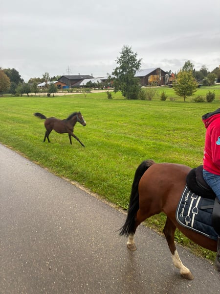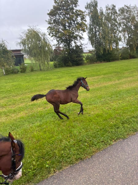 Hallo, ich möchte meinen selbst gezogenen Rohdiamanten aus Gründen der Bestandsverkleinerung verkaufen, Celest ist, eine doppelt registrierte (AQHA/APHA) Stute, geboren am 7.4.2025 aus meiner Stute Lianis Legacy von dem Hengst AM Hot Chester, bedeckt haben wir im Natursprung. Der Hengst steht bei uns auf dem Hof und beide Elterntiere können besichtigt werden. Die kleine Maus beherrscht das Fohlen, ABC in Bravour, kann sogar von meinem Sechsjährigen Sohn draußen geführt werden, hiervon gerne auch Videos. Aktuelles Stockmaß ca 145, endstockmaß geschätzt 162 cm. Im Umgang ist sie ein wahrer Engel, ich hatte noch nie so ein liebes Fohlen. Hufe geben, putzen, spazieren gehen (in der Gruppe sowie alleine), wenige Minuten longieren, führen (auch über einzelne Stangen), auf den Anhänger gehen (gefahren ist sie noch nie), Hufschmied und als Hand Pferd mitgehen ist mit dieser wundervollen Maus alles kein Problem. Preislich stelle ich mir 7500 € vor, verhandelbar, Platz vor Preis und über eine Ratenzahlung kann man reden. Gerne darf man auch einfach einen Preisvorschlag machen. Weitere Informationen, Videos und Bilder, so wie Besichtigungstermine gerne per WhatsApp vereinbaren unter +49 15777021543