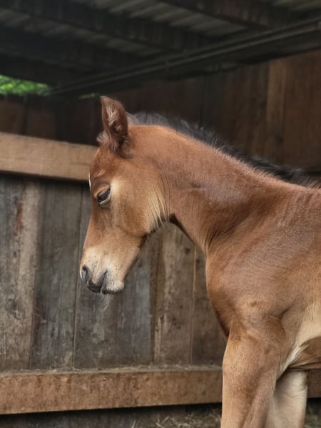 For our "ABBYGALE" (MY BLUE HOT STUFF), we are also looking for a 5-star home. This stunning Quarter Horse mare (born 2025) was born on our farm. Her parents are also located here: Mother: TL Blue Alice (Aint It The Blues) Father: Zippos King Bar Abby is an absolute eye-catcher: Her chestnut coat creates a beautiful contrast to her white blaze and black mane. She has an excellent conformation, and her eyes reflect her curious yet gentle nature. She moves above average and will be suitable for both competitions and leisure riding. So, if you are looking for a little beauty with great potential, Abby is a perfect choice. Abby holds an equine passport from the DQHA, is enrolled in the DQHA Futurity, and has the American registration papers (certificate of registration) from the AQHA. She is currently still with her mother in an open stable/pasture as a foal. She can either stay here for further upbringing or move to her new home once she is no longer nursing. If you would like to meet Abby or have any further questions, please feel free to contact us.