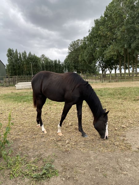 Pour votre considération CR Cookies N Cream alias Arizona Arizona est une jument de 2024, de couleur noire fumée, enregistrée AQHA/APHA, par GP The Cowboy Gun, issue d'une mère Peek a Boom. Arizona est une fille très amicale et curieuse, qui adore l’attention. Elle maîtrise parfaitement ses bases, sait rester attachée en longe, monter dans un van et connaît la douche. Elle soulève ses pieds avec aisance et reste immobile pour le maréchal-ferrant. Elle possède un excellent pedigree et pourrait devenir une très bonne poulinière un jour. Bien que je l’aie destinée à la reining, son père a participé à des compétitions polyvalentes, ce qui pourrait également lui convenir. Pour plus d’informations, n’hésitez pas à m’envoyer un message privé.