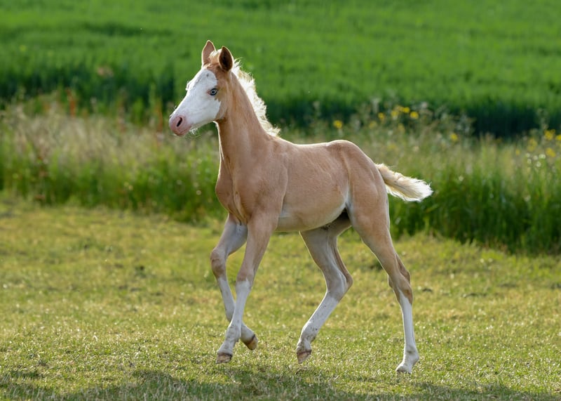 Kleine Lady in besonderer Optik! Zum Verkauf steht eine vielversprechende American Quarter Horse Stute, geboren im Jahr 2025. Diese elegante Palomino-Dame mit blauen Augen besticht durch ihre außergewöhnliche Farbgebung und ihr charmantes Wesen. Sie ist bestens geeignet für den Reining-Sport und zeigt bereits vielversprechende Ansätze in der Bewegung. Gunshine ist bei uns geboren und wächst bei uns in einem großen Herdenverband auf. Sie bekommt volles AQHA Papier und einen DQHA Equidenpass. Auch ihre Abstammung kann sich sehen lassen und ist für Züchter interessant: Vater: Shiners Voodoo Mutter: Only Gun N Hollywood (Colonels Smoking Gun x Lads 50) Anfragen bitte nur telefonisch unter 0172/9084423 Mails können nicht beantwortet werden