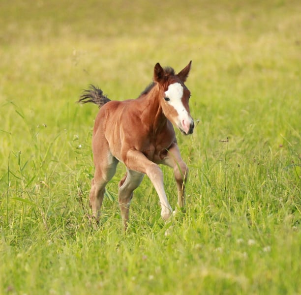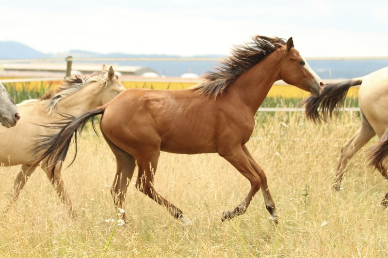 For sale is a beautiful American Quarter Horse mare, born in 2024. This young bay with splash impresses with her elegant appearance and friendly nature. She is ideal for leisure and competition riders looking for a reliable and talented horse. Her pedigree and potential make her an ideal partner for various disciplines. We look forward to hearing from you if you are interested and for further information. Viewing and test riding possible by arrangement. Berta knows the foal ABC at the time of delivery.