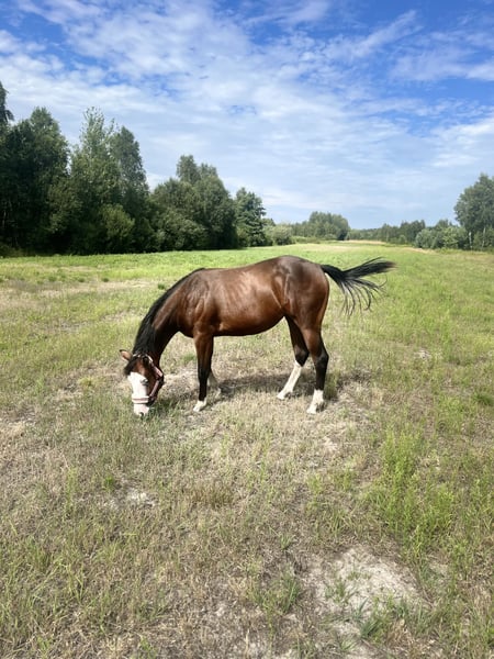 Na sprzedaż piękna klacz American Quarter Horse! Dane: - Rasa: American Quarter Horse - Płeć: Klacz - Rok urodzenia: 2024 -sire Tricked out Spook LTE 72 000 ,Sire Earnings 800.000$ - Umaszczenie: Bay - Wzrost: 150 cm -Panel Test 6 N/N - Specjalizacja: Reining Ta młoda i wszechstronna klacz to doskonały wybór dla miłośników reiningu oraz osób poszukujących wszechstronnego konia do dalszego szkolenia. Zadbana, o dobrym temperamencie, gotowa na nowe wyzwania. Zainteresowanych zapraszamy do kontaktu!