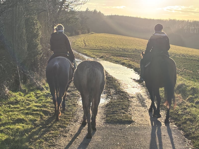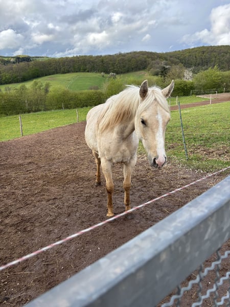 Zum Verkauf steht eine wunderschöne American Quarter Horse Stute im Dunalino-Farbtyp. Geboren im Jahr 2023, ist sie bereits jetzt ein echter Blickfang mit ihrem eleganten Erscheinungsbild und ihrem besonderen Wesen. **Merkmale:** - **Rasse:** American Quarter Horse - **Geschlecht:** Stute - **Geburtsjahr:** 2023 - **Farbe:** Dunalino - **Stockmaß:** 150 cm - **Einsatzbereich:** Western Diese talentierte Stute eignet sich hervorragend für den Westernsport und hat das Potenzial, sich in verschiedenen Disziplinen zu beweisen. Sie ist gut sozialisiert und hat einen starken Charakter, was sie zu einer idealen Partnerin für Reiter aller Erfahrungsstufen macht. Für Anfänger ist sie aufgrund ihres Ausbildungsstandes nicht geeignet. „Unicorn“ hat ein starkes Fundament und wirklich sehr stämmige Beine. Ihr dickes gesundes Röhrbein zeichnet sie aus. Sie geht im den Hänger, ist artig beim Hufe machen und ist regelmäßig geimpft sowie entwurmt. Seit dieser Woche steht sie auf der Vineyard Ranch für einen ersten leichten Beritt. Hier ist es uns wichtig, dass auf das Pferd eingegangen wird und sie langsam an das Leben als Reitpferd gewöhnt wird. Sie ist im Herdenverband artgerecht groß geworden und liebt einen Offenstall. Box ist nicht so ihr Ding aber muss sie sich jetzt auch im Reitstall dran gewöhnen. Ihre Mutter ist unsere beste Zuchtstute. Sie ist auch sehr gut unterm Sattel, wird von Kindern und Erwachsenen gleichmäßig geritten. Unser Wunsch wäre, dass sie bei Familie Bartmann jetzt erst mal die nächsten 3-4 Monate bleiben könnte. Der Preis steigt mit jedem vollendeten Monat. Sie ist 5 Panel N/N. Bei Interesse oder für weitere Informationen stehe ich Ihnen gerne zur Verfügung. Lassen Sie sich diese Gelegenheit nicht entgehen, ein tolles Pferd zu erwerben!