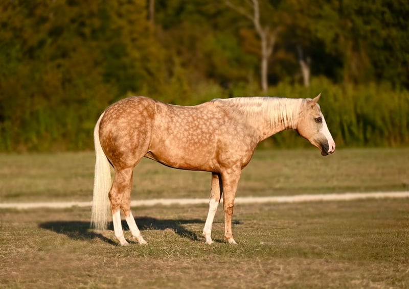 ⚜️𝐓𝐇𝐄 𝐅𝐀𝐋𝐋 𝐇𝐄𝐑𝐈𝐓𝐀𝐆𝐄 𝐂𝐋𝐀𝐒𝐒𝐈𝐂⚜️ Happening now thru MONDAY | NOVEMBER 3rd - Available EXCLUSIVELY on HorseBid's website! For more details and to register visit: www.Horsebid.com CONSIGNOR CONTACT: Nate Ballerino Horse Co 254-716-9588 LOCATION: Waco TX BREED: Quarter Horse REGISTERED: Yes REGISTERED NAME: Grabba Gear COLOR: Palomino HEIGHT: 14.3 AGE: 2 GENDER: Mare This gorgeous 2-year-old palomino “Gigi” is the real deal — the perfect mix of proven genetics, talent, and early training**. She’s sired by Shiftin Gears (LTE: $32,000) and out of a Nu Chex To Cash mare (LTE: $61,000) giving her a pedigree packed with performance, athleticism, and trainability. With 6 months of professional reining training, this filly already knows all the parts — she **turns around correct, stops deep, changes leads, and departs soft**. She’s naturally balanced, willing, and incredibly smooth to ride, showing all the signs of a big-time prospect for the show pen or ranch versatility arena. Beautiful, talented, and smart — she’s everything you want in a young horse with the foundation and mind to go far in any direction. ✅ 2-year-old palomino with exceptional bloodlines ✅ 6 months of reining training — knows all her maneuvers ✅ Athletic, trainable, and ready to finish your way A top-quality prospect with a bright future ahead — don’t miss this one.