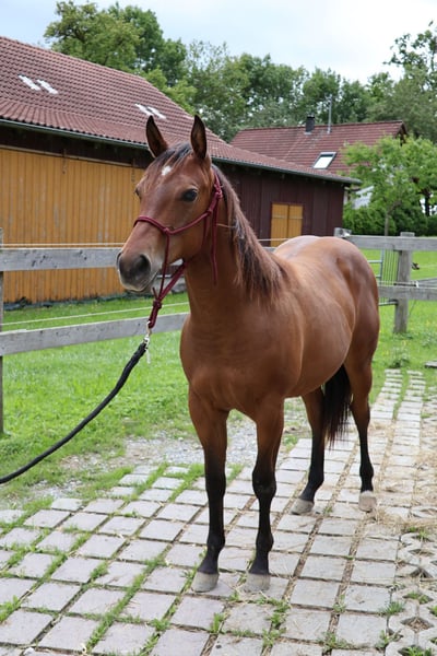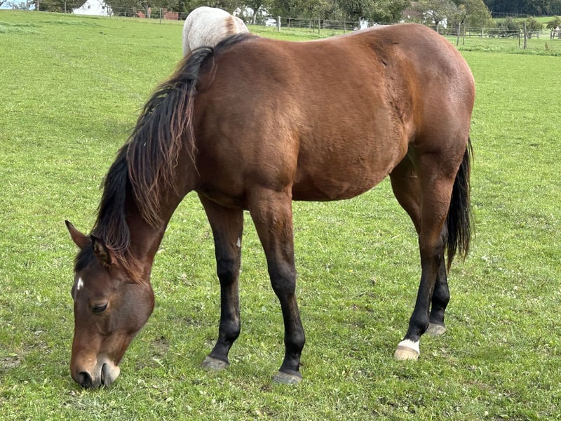 Lilly ist am 14.4.2024 geboren und eine sehr anhängliche,anständige Stute.Sie liebt es geputzt zu werden,gibt brav die Hufe,kennt Kinder,Hunde und laute Maschinen. Sie ist kräftig gebaut und hat einen wunderschönen Kopf.Sie hat jetzt schon sehr viel Mähne und einen dichten Schweif. Über die Eltern 5 Panel und MYHM N/N getestet. Sie wird regelmässig entwurmt und dem Hufschmied gezeigt und wächst in einer gemischten Gruppe artgerecht auf.