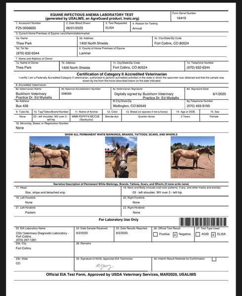 "DISPONIBLE SUR ENCHÈRE EN LIGNE SUR www DOT MagicHorseAuction DOT com ENCHÈRES OUVERTES MAINTENANT jusqu'au MARDI | 22 JUILLET - ACHAT IMMÉDIAT DISPONIBLE ! *Le prix final sera déterminé sur le site de l'enchère* INFORMATIONS DE CONTACT DU CONSIGNEUR : Dynamite Horses 970-632-3644 EMPLACEMENT : Fort Collins, CO MMB PEPPYS MCCUE alias ; Starbucks. Starbucks est une jument blonde dun de 15,1 mains qui attire tous les regards ! Sa construction solide, combinée à sa couleur, son physique et sa personnalité extrêmement douce et docile, en fait la préférée de l'écurie ! Starbucks a bénéficié de 30 jours de formation en western pleasure, 30 jours en anglais et environ 15 sorties en randonnée - nous l'avons même emmenée dans des situations très chargées et chaotiques avec beaucoup de circulation et de désordre, et elle a géré cela comme une championne ! Starbucks a de belles transitions de pas, trot et galop avec un trot et un galop d'une douceur incroyable. Elle a un arrêt rapide et un rollback et travaille sur son side pass et ses spins. Starbucks a l'air incroyable en selle anglaise, a été travaillée sur des cavalettis et sait où sont ses pieds ! Sur le sentier, elle n'a pas hésité face aux poussettes, vélos, coureurs, circulation, etc. ! Cette jument a une fondation incroyable pour son âge, en plus d'un bon cerveau et d'une belle couleur, et elle amènera n'importe qui au sommet, que ce soit dans le ring de concours ou simplement en s'occupant des gens sur le sentier. Appelez-moi ou découvrez ce super cheval ! Vente sans papiers en raison d'une erreur ADN du côté de la mère."