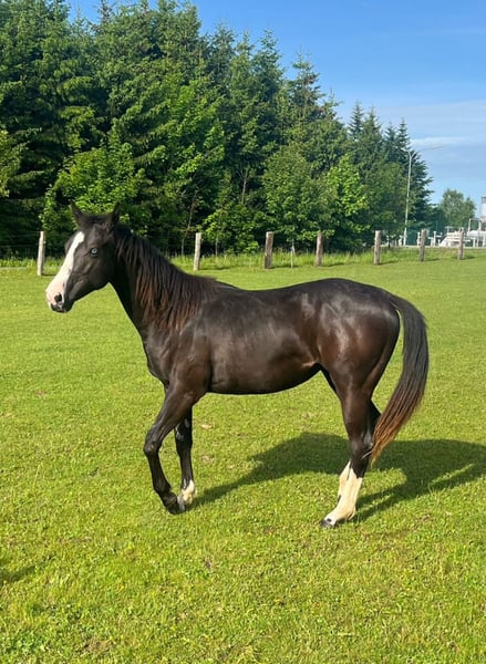 For Sale: American Quarter Horse - Appaloosa Mare – Perfect for Leisure and Hobby Riding! We are offering a beautiful American Quarter Horse mare, born in 2023. She is an elegant black mare with a height of 14.0 hh (still growing) and is ideally suited for recreational riding. The young mare is healthy, friendly, and curious, making her perfect for experienced riders looking for a reliable and charming horse to train and develop further. She has been lovingly raised and is already well-handled. The horse is fit, attentive, and shows great potential for further training. Ideal for riding and leisure activities. Currently, she is on the foal pasture. If interested or for further questions, please feel free to contact me. Viewing by appointment is possible. She will only be entrusted to loving, experienced hands.