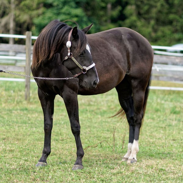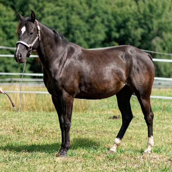 QB Coco Banjo - dieser junge Eyecatcher (Stute, 3.2023 geboren ) in edlem Black zieht alle Blicke auf sich! Mit einem aktuellen Stockmaß von 147 cm, sehr schönem und korrektem Gebäude sowie einer erstklassigen Reining/Allround-Abstammung bringt sie alles mit, was man sich für Sport, Turnier oder die ambitionierte Freizeit wünscht. Ihre Highlights sind unter anderem ihre tolle Farbe und ihr Ausdruck sowie ein stabiler, harmonischer und korrekter Körperbau und einen ganz lieben, menschenbezogenen, verschmusten Charakter. Kerngesund und 6-Panel n/n. Coco wächst im Herdenverband mit gleichaltrigen Stuten auf. Wird täglich gehändelt und kennt alles, was man als Jungpferd in ihrem Alter kennen und können sollte. Zeigt bereits im Freilauf eine tolle Bewegungsqualität und viel Talent, ideal für Reining, Allround oder vielseitigen Einsatz. Coco ist eine Tochter vom erfolgreich geshowten QH Hengst High Roller Whiz. Cocos Mutter wurde ebenfalls geshowt und ist Allround gezogen. Ein echtes Juwel für Kenner und Liebhaber. Wird direkt vom Züchter abgegeben.