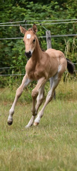 A veces, las cosas no salen como uno planea, por lo que lamentablemente debo desprenderme de uno de mis caballos. En venta está "Moon", una hermosa y llamativa yegua de la raza Quarter Horse en el color especial Buckskin, que no solo impresiona por su apariencia, sino sobre todo por su carácter amigable. Datos principales: Nombre: Spooks Famous Moon Pedigrí: de Best of Spook, de A Famous Escapes Fecha de nacimiento: junio de 2023 Color: Buckskin Altura a la cruz: aproximadamente 1,50 m (aún en crecimiento) 5 Panel n/n Pasaporte DQHA con certificación de cría Inscrita en Futurity Carácter y entrenamiento: Moon es una yegua joven extremadamente sociable y cercana a las personas. Busca constantemente el contacto con el jinete y en el manejo diario se muestra siempre tranquila y dispuesta a aprender. Ya está muy bien preparada para su futura vida como caballo de montar: Manejo con herrador: muestra una actitud muy tranquila y sin complicaciones durante la herradura. Se desplaza con calma en el remolque y viaja tranquilamente. Manejo general: conoce el ABC de los caballos jóvenes y es muy aplicada. Está familiarizada con paseos y con tareas como caminar sobre lonas, por ejemplo. Condiciones y salud: Moon ha crecido fuerte y sana. Hasta ahora nunca ha tenido problemas de salud y disfruta de su juventud en un paddock con otros caballos, en un grupo social. Esto la ha socializado perfectamente, es segura en sus patas y equilibrada. Resumen: Quien busque un potro con ascendencia en reining y un corazón de oro, encontrará en Moon a la perfecta candidata. Ella está lista para cambiar a manos que la apoyen y comenzar juntos nuevas aventuras y proyectos.