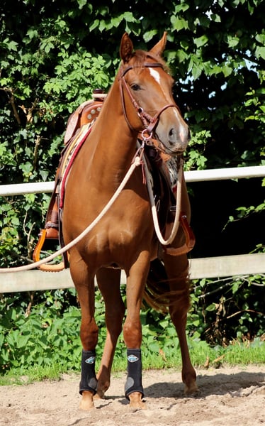 Lilwhizwereguns Spooks Gotta Gun/ Pale Face Dunnit Granddaughter! Born: 17.04.2023 Chestnut "Lilwhizwereguns" is a typey, large-framed chestnut Quarter Horse mare from reining performance lines. She is simply a dream horse with an incredible body and presence. If you are looking for a great reining prospect with immense talent, she is the perfect choice! Also very interesting for breeding later on. 5 Panel N/N Sire is IFWHIZSWEREGUNS: His lifetime earnings are $118,636. He is a full blood brother to SPOOKS GOTTA WHIZ! He was among others EquiStat 2016 19th leading 3-year-old, 2018 14th leading reining horse, 2016 13th Congress Open Futurity, 2016 CHAMPION High Roller Reining Classic Open Futurity, 2016 3rd NRHA Futurity GO2 Open, 2016 21st NRHA Open Futurity, 2017 CHAMPION High Roller Reining Classic Open Stks, 2017 RESERVE CHAMPION High Roller Reining Classic Open Derby, 2017 13th NRHA Open Derby, 2018 3rd Cactus Classic Open Derby, 2018 9th NRBC Open Derby, 2018 4th Reining By The Bay Open Derby and 2018 CHAMPION High Roller Reining Classic Open Derby. Dam of LILWHIZWEREGUNS is Lil Pale Gun by PALE FACE DUNNIT. Pale Face Dunnit's lifetime earnings exceed $72,000. He was USEF National Open Reserve Champion, NRBC Open Classic Finalist, NRHA Open Derby (Top 10), HRRC Open Derby (Top 5), AQHA Performance Register of Merit, JR Reining 7th at the World Show, HRRC Open Derby Res. Champion, NRHA Open Derby (Top 20 Finalist), NRHA Futurity: Open Futurity Finalist (Top 10) (4th in 1st go-round), Scottsdale Open Classic Futurity (tied 3rd), RMRHA Summer Slide Open Futurity Champion. She can be easily tied and groomed, has been regularly dewormed and presented to the farrier. She is already familiar with groundwork, lunging, and the saddle, and is accustomed to rider weight. She is always well-behaved and attentive. She is sold with a DQHA equine passport and AQHA certificate of registration. https://www.allbreedpedigree.com/lilwhizwereguns NRHA Germany SSP paid IRHBA BIP Italy nominated (through sire) www.white-diamond-horses.de