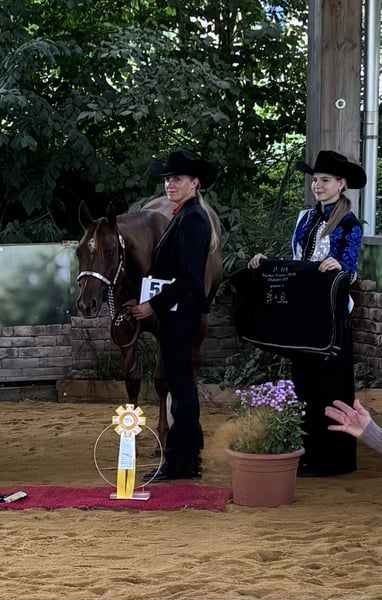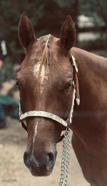 For Sale: American Quarter Horse Mare – Dark Chestnut, born 2023 This beautiful two-year-old mare is by Unxpected out of a direct Blazing Hot mare. Her final height is expected to be around 16.0 hh. She was born here, just like four of her half-siblings. All of them are known for their kind, fearless temperament and easy trainability. The siblings are successfully competing in sport; one half-brother recently became Maturity, DQHA, and NSBA Champion Hunter Under Saddle at the Q25. Phoebe has been handled and ground-trained so far. She is ready to show in in-hand trail and longe line. During the summer, she was Reserve Futurity Champion in longe line and co-Reserve Champion in trail. She is farrier- and loading-friendly, regularly vaccinated and dewormed. Current clean X-rays are available.
