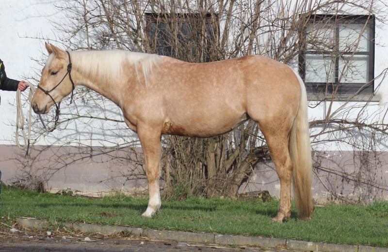 Futurity Prospect ! Tolle palominofarbene Stute aus allerbesten Reining Blutlinien. Vater: Late Night Stopper ( Jacs Electric Spark x Best Stop ) LTE >100.000 , Mutter: Spookacheka ( International High Point Horse, ROM Reining ; by Smart Spook x Nicacheka) Stoppin Late Night hat einen super Körperbau und sehr viel Athletik. Sie wurde auf der DQHA Fohlenschau mit über 82% bewertet und war Reserve Champion der Schau. Sie ist seid Juli gestartet und kann jederzeit angeschaut und probegeritten werden. Einbezahlt NRHA Germany Futurity