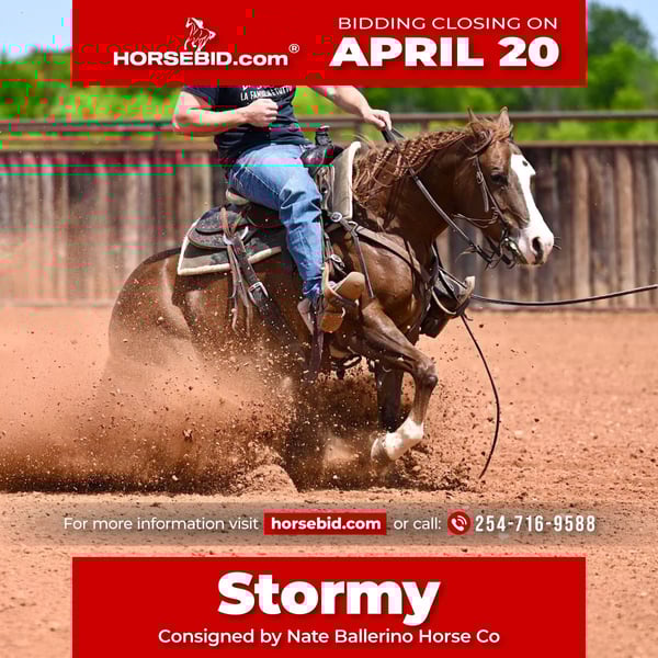 ⚜️𝐭𝐡𝐞 𝓔𝓵𝓲𝓽𝓮 𝐒𝐩𝐫𝐢𝐧𝐠 𝐂𝐥𝐚𝐬𝐬𝐢𝐜⚜️ Happening now thru MONDAY | APRIL 20th - Available EXCLUSIVELY on HorseBid's website! For more details and to register visit: www.Horsebid.com CONSIGNOR CONTACT: Nate Ballerino Horse Co 254-716-9588 LOCATION: Waco, TX BREED: QH REGISTERED: Yes REGISTERED NAME: Inferno Storm COLOR: Sorrel HEIGHT: 14.1 AGE: 4 GENDER: Mare