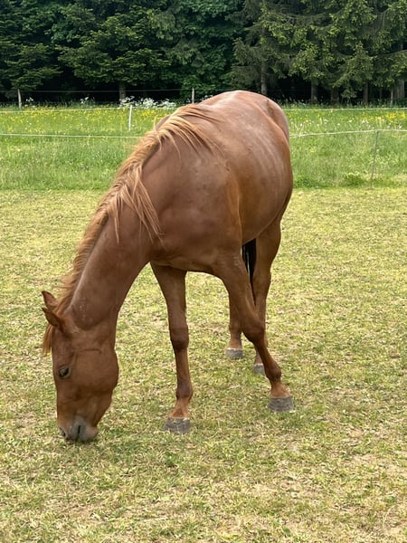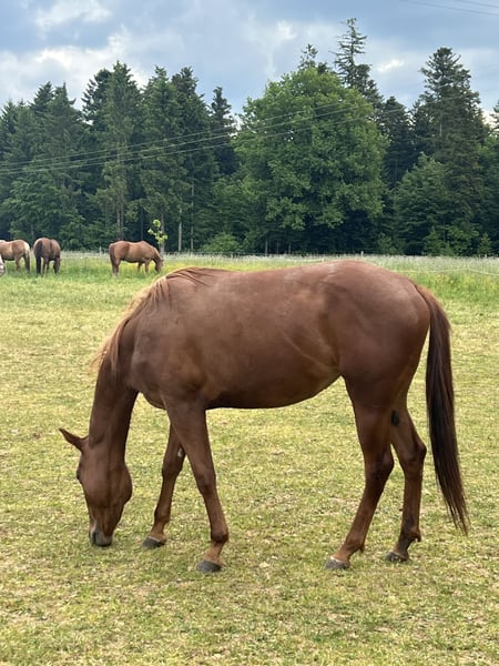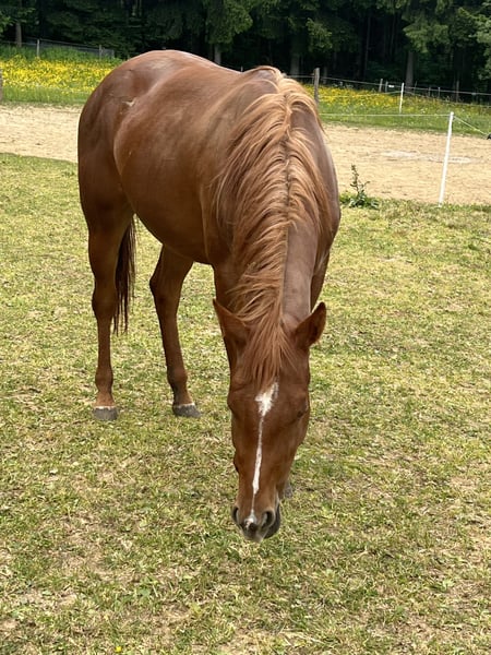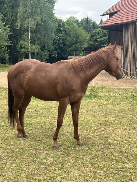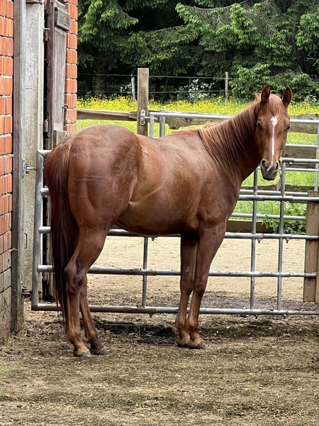 Dear Quarter Horse mare born on May 4th, 2022, with an equine passport, is looking for a new 5-star home. (Please note, the mare is still green.) She was raised in a mixed herd with two mares, two geldings, and a foal of the same age from the Haflinger breed. She is familiar with the farrier and has been driven in a trailer. For interested parties, please contact us via WhatsApp or phone call. Phone: 015906143186 The last three pictures show her sire.