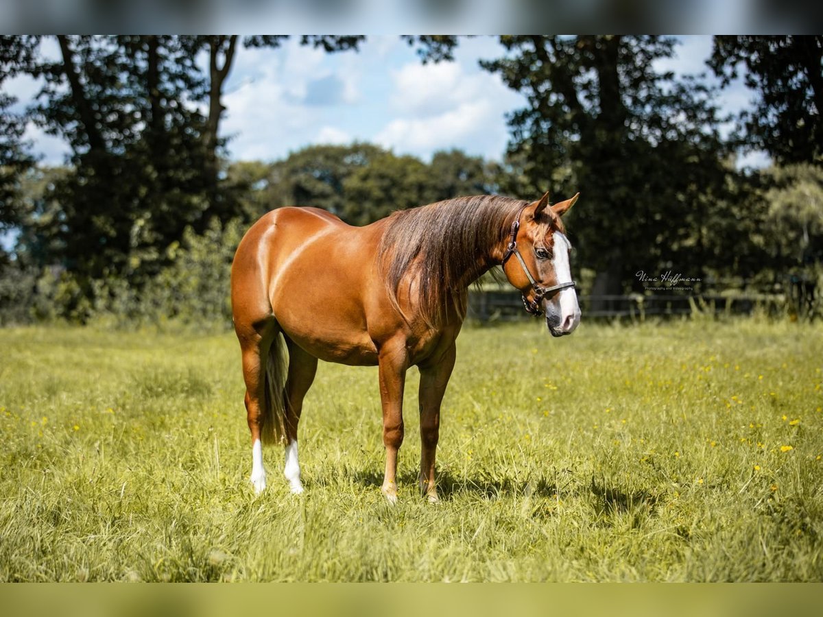 ❗️OFFERED FOR YOUR CONSIDERATION❗️ ⭐️GunninForARevolution⭐️ GunninForARevolution ist eine 2022 geborene AQHA & APHA Stute, sie ist ein absoluter eye catcher mit viel Behang und Schweif. Sie ist NRHA Germany und NRHA European einbezahlt. Elli zeigt sich sehr talentiert in allen Manövern und hat eine ihrem Alter gerechte Reiningausbildung. Durch ihre einfache Trainierbarkeit eignet sie sich auch sehr für den ambitionierten Non Pro Reiter. Eine einwandfreie AKU ist vorhanden. Durch ihr herausragendes Pedigree wird sie für die Zucht sehr wertvoll sein. Dam: BA Revolutionarylady ist eine direkte Tochter von $2M NRHA Hengst Einsteins Revolution, ihre Mutter hat bereits PE von mehr als $3,000 in NRHA & NRCHA Sire: Gunnin for Chicks (LTE > $100.00) (Seine Mutter produzierte bereits +600.000$ PE) Bei Interesse dürfen Sie uns gerne kontaktieren. 0173/7164511 0171/6840395 GunninForARevolution GunninForARevolution is a 2022 AQHA & APHA mare, an absolute eye-catcher with a lot of mane and tail. She is enrolled in NRHA Germany and NRHA Europe. Elli shows great talent in all maneuvers and has an age-appropriate reining training. Due to her easy trainability, she is also very suitable for an ambitious Non-Pro rider. A perfect pre-purchase exam (AKU) is available. Thanks to her outstanding pedigree, she will also be highly valuable for breeding. Dam: BA Revolutionarylady is a direct daughter of $2M NRHA sire Einsteins Revolution, her mother has PE of more than $3,000 in NRHA & NRCHA Sire: Gunnin for Chicks (LTE > $100,000) (His mother produced +600.000$ PE) If interested, contact us at: 0173/7164511 0171/6840395
