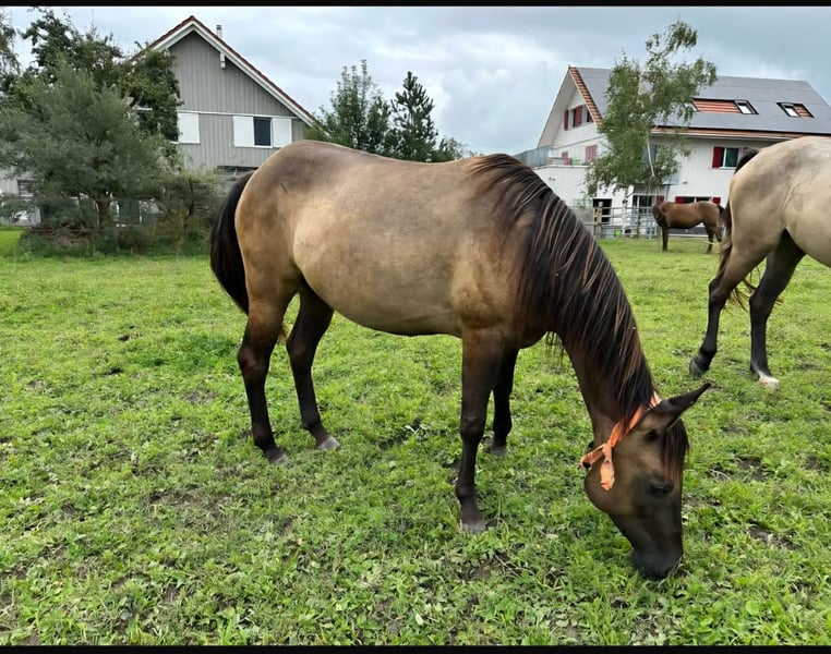 For sale is a stunning Quarter Horse mare, born on August 14, 2022, in the rare and attractive Grullo color. Her current height is approximately 14.8 hands. She holds AQHA papers and an equine passport, and with a foundation percentage of 92%, she is also highly interesting for breeding purposes. Ultima impresses with her harmonious, correct, and compact build, as well as her expressive appearance. She is healthy, tested n/n on the 5-Panel test, and barefoot. Character-wise, she is very pleasant to handle. She is well-behaved, respectful, uncomplicated, and highly cooperative. She is attentive, human-oriented, and easy to manage. Her strong "will to please" and good basic calmness make her a reliable partner who is not easily spooked and always reacts confidently. In a herd, she is very social and familiar with both open stable management and turnout box housing. She is also well-behaved and uncomplicated with the veterinarian and farrier. She has been regularly vaccinated and dewormed, and she handles trailer loading without issues. Ultima has already received six months of basic training and is familiar with daily handling, trail riding, lunging, and work in the round pen. She demonstrates talent and motivation, has good movement, and offers excellent potential for a sporting future. Overall, AHF Ultima La Buena is a promising young mare who can be developed for sport or serve as a reliable partner thanks to her character. Her high-quality foundation pedigree also makes her an exciting option for breeding.