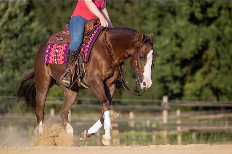 Zum Verkauf steht eine 4-jährige Quarter Horse Stute mit fundierter Grundausbildung, die sich aktuell in der Schwerpunktausbildung Richtung Reining befindet. Die Stute überzeugt durch ihr Talent, Lernbereitschaft und ein angenehmes, ausgeglichenes Wesen. Sie zeigt sich motiviert bei der Arbeit, arbeitet aufmerksam mit und bringt beste Voraussetzungen für den weiteren sportlichen Weg im Reining-Sport mit. Gesundheitlich ist sie bestens abgesichert: top Röntgenbilder liegen vor und können selbstverständlich eingesehen werden. Sie verfügt über einen sehr schönen und starken Körperbau, der auch größere Reiter sehr gut abdeckt. 🔹 Details auf einen Blick: • Quarter Horse Stute • 4 Jahre alt • Solide Grundausbildung • Aktueller Ausbildungsschwerpunkt Reining • Ehrlich, talentiert und mit gutem Charakter • Sehr gute Röntgenbilder vorhanden ☑️ einbezahlt in den folgenden Programmen: NRHA Germany, NRHA Euro Nomination, IRHBA, NRHA Belgium Mutter hat NRHA LTE und war AQHA Reining Futurity Champion Ein ideales Nachwuchspferd für ambitionierte Freizeitreiter:innen oder den Einstieg in den Turniersport. Standort: Lechner Performance Horses, 3153 Eschenau/Österreich 📍Weitere Informationen und Videos gerne auf Anfrage.