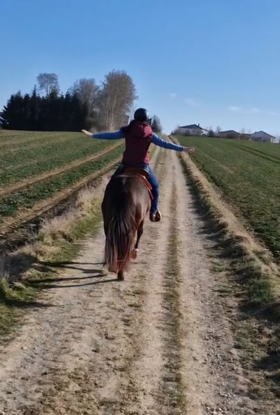 If interested, please call! Messages will not be answered! With a heavy heart, I have decided to part with my little Quarter Horse mare Missy! I simply do not have the time to give my two young horses the attention they need and to fully exercise them. Missy is a 4-year-old granddaughter of Einstein Revolution, currently about 1.49m, a slim, sporty, and elegant type - not a weight carrier and a truly great mover! She has been with me for 2 years and has been trained according to the Pro Ride concept. She shows herself to be very willing and talented in free work (lying down and retrieving her little Kracke is her easiest and favorite exercise) and always wants to please! However, she is absolutely not a beginner's horse - she is very dominant and has a strong opinion of her own! She is people-oriented and seeks closeness but also tests her boundaries anew all the time! Currently, she is in a large mixed herd and has access to hay and pasture 365 days a year! About 1.5 years ago, she had a trailer accident in which she injured her back. This injury has been completely healed and does not hinder her at all! She is fully rideable. Loading in the trailer is also not a problem, and I have been out and about with her a lot since then and have participated in various courses! This is not an urgent sale! We are located in Hitzhofen near Ingolstadt. I only want to place her in experienced hands and with someone who has a lot of time. An open stable would be desirable - she knows nothing else. For more information, feel free to call me. On my Instagram account feelyourhorse.manship, you will find many videos and impressions of her. Mobile 0176 322 144 05 Best regards!