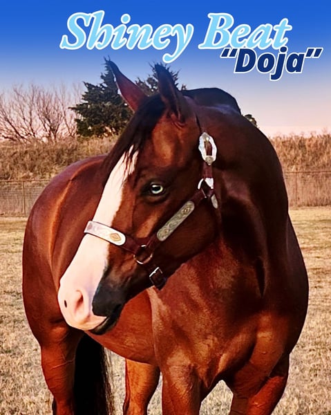 ♦️𝐍𝐄𝐖 𝐘𝐄𝐀𝐑'𝐒 𝑬𝒙𝒕𝒓𝒂𝒗𝒂𝒈𝒂𝒏𝒛𝒂♦️ Happening now thru MONDAY | JANUARY 12th - Available EXCLUSIVELY on HorseBid's website! For more details and to register visit: www.Horsebid.com CONSIGNOR CONTACT: Vanlandingham Reining Horses 940-727-2449 LOCATION: Whitesboro, TX BREED: AQHA & APHA REGISTERED: Yes REGISTERED NAME: Shiney Beat COLOR: Bay HEIGHT: 15 AGE: 4 GENDER: Mare “Doja” This mare has been in our program since she was a yearling and represents our daughter’s very first complete project—prepared start to finish for the NRHA Futurity. Doja proved herself in the show pen by making the Youth Futurity Finals, earning Level 4 money at the Invitational Futurity, and just missing the NRHA Level 4 NonPro Futurity Finals by a mere half point. Following the conclusion of the Futurity the first weekend of December, she was given a well-deserved mental break, as we do with all of our three-year-olds. Doja is now mentally fresh, rested, and ready to return to full-time training. With a little additional finish work, Doja has the ability to put her next owner at the top of major reining events. She possesses all the maneuvers needed to be a big-time Non Pro reining horse or a competitive lower-level Open horse for the derbies. She also has the size, bone, and versatility to excel in multiple disciplines if you choose to go that direction. She is NRHA, NRBC, and NARS enrolled, eligible for the 100X program,. Doja is also double registered with AQHA and APHA, making her eligible for all Chrome Cash Incentives. The majority of Doja’s riding to date has been in the arena, though she has also spent some time riding outside at the ranch and handled the great outdoors with confidence. She has been hauled extensively to all of the NRHA’s major events, giving her plenty of miles and exposure to a wide variety of facilities and environments. We do want to make note that Doja does have a superficial crack on both hind hooves. She does not require special shoeing and is barefoot up front. She has been evaluated by multiple veterinarians, has not required any treatment, and has no soundness issues. As a yearling, she x-rayed clean. Pre-purchase veterinary exams are welcome. Beyond the show pen, Doja checks every box as a future broodmare—big, strong, conformationally correct, and extremely athletic. She is also a standout visually: a gorgeous dark bay with a bold blaze, blue eyes, and stocking legs. Very flashy and eye-catching. Doja is by the great Colonels Shining Gun, a five-million-dollar sire, and out of a proven mare who was shown extensively with an exceptional winning record (NRHA money won 41 of the 46 times shown ). After purchase, we welcome your trainer to come ride Doja for the day so we can share insight and guidance on how to help her function to the best of her ability. A special, well-started, well-traveled, and thoughtfully managed young mare with a proven foundation, strong pedigree, and tremendous long-term value.