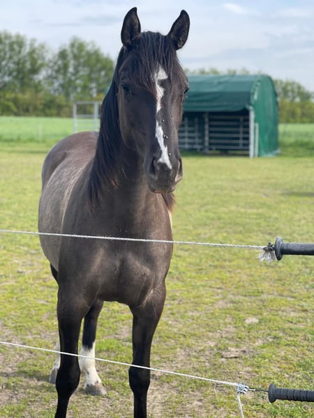 Madonna ist eine 4-jährige Quarter-Horse-Stute OHNE Papiere in der Farbe grullo. Beide Elternteile sind aber bekannt, die Mutter steht ebenfalls bei uns. Die Mutter Evita ist von Cody‘s Fine Girl und Black Cody‘s Jack. Der Vater von Madonna ist TD Im a Magic Chip. Madonna wurde dreijährig angeritten, stand dann über den Winter nochmal auf Koppel und ist seit diesem Jahr im März wieder 2x pro Woche in Arbeit. Sie läuft auf dem Platz alle drei GGA, kennt die üblichen Umgangsregeln, läuft barhuf, war viel im Gelände allein und mit anderen Pferden zusammen spazieren, hat beim Führen und an der Longe auch schon Kinder getragen (da ich therapeutisch arbeite, liegt da einfach der Fokus). Ihre Bewegungen sind absolut sitzbequem, selbst die kleineren Kinder sitzen auf ihr wie auf einem Sofa. Sie ist sowohl western als auch klassisch geritten und kennt und besitzt auch dementsprechend einen Western-sowie einen Dressursattel. Eingeritten wurde sie gebisslos, mittlerweile haben wir sie auch ans Gebiss gewöhnt, was sie gut annimmt. Madonna steht bei uns im Offenstall in einer kleinen gemischten Herde (insgesamt 5 Pferde), sie wünscht sich auch in Zukunft definitiv mindestens einen Spielpartner. Sie ist Hunde gewöhnt und bestens sozialisiert. Hat keine Angst vor großen Fahrzeugen, wie Landmaschinen. Seit Anfang November befindet sie sich nochmal in Beritt, um ihr einfach ein bisschen Routine näherzubringen und sie auch bei schlechtem Wetter vorstellen zu können. Sie ist wirklich ein ganz tolles Pferd, mutig, willig und wunderschön. Sie möchte auch gefallen, ist gern dominant und wünscht sich eine feste Bezugsperson. Hat sie so jemanden gefunden, tut sie alles für denjenigen. Sie hat ihren Menschen verdient und wenn Bedarf besteht, kann auch ihr Sattel mit ausziehen. Sie ist ca 1,55m groß und relativ kompakt. Sie steht in 14913 und bei ernsthaftem Interesse freuen wir uns über direkten Kontakt unter der 015758885560 (Nadine Hackel) Ich beantworte dann gern Fragen per Anruf, Nachricht oder WhatsApp. Auch könnte ich dann noch ein Video vom anreiten schicken. TüV liegt noch nicht vor. Sie war nie krank! Hier fehlt einfach die Zeit, das ist auch der Grund, weshalb wir sie abgeben. Sie wünscht sich schon auch gern die Nummer 1 zu sein. Preis liegt bei 9.999 € und ist bei entsprechendem passenden Menschen auch verhandelbar. Privatverkauf Es gilt der Haftungsausschluss