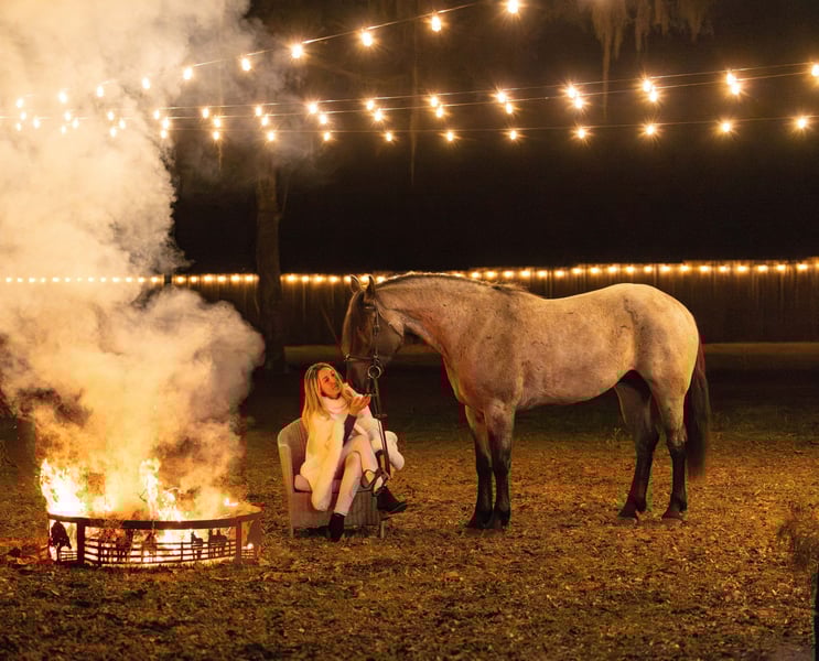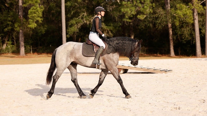 ❤️🔥𝑩𝒆 𝑴𝒊𝒏𝒆 𝐒𝐄𝐋𝐄𝐂𝐓❤️🔥 Happening now thru MONDAY | FEBRUARY 9th - Available EXCLUSIVELY on HorseBid's website! For more details and to register visit: www.Horsebid.com CONSIGNOR CONTACT: 3S Showing & Sales LLC 919-810-0760 LOCATION: Ocala FL BREED: QH/Percheron REGISTERED: No REGISTERED NAME: Bluebell COLOR: Blue Roan HEIGHT: 15.2 AGE: 4 GENDER: Mare Bluebell is a 4 year old 15.2 hand QH/Percheron cross. She is a beautiful blue roan mare with an exceptional, unflappable mind and the sweetest, most affectionate personality you could ask for! Bluebell is SAFE and FANCY. She came directly from her breeder and has been our program for the past year. She has earned what we consider “elite” status. Owning a horse of her caliber has been an absolute pleasure, and we are beyond proud to represent a horse with this much quality, heart, and character. Under English tack, Bluebell is ridden in a simple snaffle. She leg-yields beautifully, moves off the leg and has smooth balanced transitions. She turns on the haunches, picks up the canter directly from the walk, and has a perfect halt/stop with a simple “whoa.” She is adjustable, soft, brave, and incredibly willing and honest with every rider. Bluebell has been to multiple cross country facilities! She confidently goes into the water, jumps down banks AND double down banks , over coops, brush, and hedges! She is the same bold, honest horse every time. Our 8 year old rider has taken her solo around the cross country course, which truly speaks volumes about her brain and reliability. She has also been trail ridden extensively and is 100% traffic safe! Bluebell happily packed a timid adult amateur down the beach and straight into the crashing waves without hesitation. Bluebell has also completed full obstacle courses including the teeter-totter bridge, pool noodles, and more! Bluebell has been around cattle, including longhorns! She has even been ridden at night through colorful smoke bombs and around fire. In Western tack, she is just as beautiful and broke. She will stop on a dime, move out into an extended trot or settle into a slow jog, and responds beautifully to your voice. She is truly husband safe for a quiet ride. Bluebell also rides completely bridleless — walk, trot, canter, and even jump! Notice in the video that our arena has no fencing, which is a true testament to her training and rideability. She stays soft, responsive, and confident off your seat, leg, and voice alone. What truly sets Bluebell apart is her temperament. She is a total love bug! Cuddly , sweet, and a genuine people horse. She will meet you at the gate where the smallest riders can bring her in, groom, tack up, and handle her completely on their own. She stands quietly and patiently for every step. Bluebell has safely carried riders from 8 to 77 years old and is consistently my go to horse when I need to pack a child or timid adult amateur. She is kind, honest, confidence building, and trustworthy in every situation we put her in. In the barn, she is just as wonderful. Easy to load, tie, cross tie and catch. Bluebell is happy inside, turned out alone or in a mixed herd! She is barefoot & has absolutely no vices. She is an easy keeper. To sum it up, Bluebell is a thoroughly tested, family-safe horse that is also talented and trained enough for the show ring! She is suitable for the walk trot rider, yet fancy and capable enough to jump cross country, go down centerline, or step right into the show jump ring!! Family safe, kid safe, amateur safe AND beautiful with all the fun buttons. And let’s not forget — she is a head turning blue roan with presence and beauty to match her talent and brain. With Bluebell, you truly can have looks, training, versatility, and temperament. There is no reason to compromise! If you’d like to meet Bluebell, please reach out today. We have an in-house shipper who can easily arrange safe, reliable transportation anywhere in the country. Bluebell has been a very special part of our program and our family, and while we may only be a small part of her story, we are truly hoping to find her forever family.
