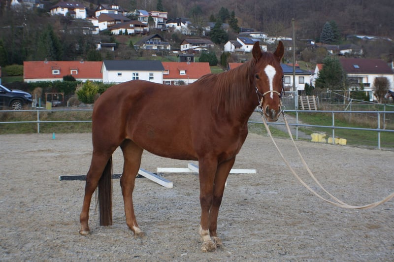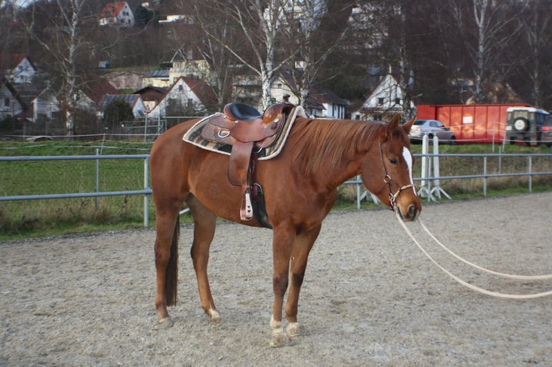 Kruzi „Kruzinintothenite“ ist eine wunderschöne 4-jährige Quarter Horse Stute mit AQHA-Papieren und einem Stockmaß von ca. 1,62 m von KEEP ON KRUZIN x ITS MY NITE. Sie überzeugt nicht nur durch ihre starke Pleasure- und Allround-Abstammung, sondern ganz besonders durch ihren lieben, ehrlichen und unerschrockenen Charakter. Kruzi ist angeritten in Schritt und Trab, dabei stets motiviert, aufmerksam und bemüht, ihrem Reiter zu gefallen. Zusätzlich habe ich mit ihr schon an Bodenarbeitskursen teilgenommen, die sie sehr brav, konzentriert und vorbildlich gemeistert hat. Auch hier zeigte sie sich lernwillig, nervenstark und kooperativ. Sie geht problemlos alleine ins Gelände, ist brav beim Hufschmied, verladefromm und zeigt sich auch in neuer Umgebung stets gelassen und zuverlässig. Kruzi hat vollständig AQHA Papiere,einen Equidenpass und eine aktuelle AKU. Sie kennt Straßenverkehr, Landmaschinen, Hunde, Katzen, Schafe und Kühe. Auch von Kindern lässt sie sich problemlos handeln. Kruzi stand bereits in Boxenhaltung als auch Offenstallhaltung und ist dabei eher rangniedrig, wodurch sie sich gut in bestehende Herden integriert. Aufgrund von Zeitmangel durch Änderungen in meinem Privatleben werde ich Kruzi leider nicht mehr gerecht und kann nicht weiter ausbilden. Aus diesem Grund habe ich mich schweren Herzens zu diesem Schritt entschieden. Durch ihre sehr gute Abstammung und ihre tollen, flachen Gänge eignet sie sich optimal als Nachwuchspferd für den Sport, insbesondere für Pleasure, Allround und Trail, ebenso als zuverlässiger Freizeitpartner. Auch für die Zucht ist sie aufgrund ihres wirklich guten Papiers sehr interessant- Im täglichen Umgang ist sie menschenbezogen, nervenstark und macht einfach jeden Tag Freude. Ich gebe sie nur in gute, verantwortungsbewusste Hände ab, die ihr weiteres Potenzial zu schätzen wissen. Videos an der Longe und unterm Reiter sind vorhanden.