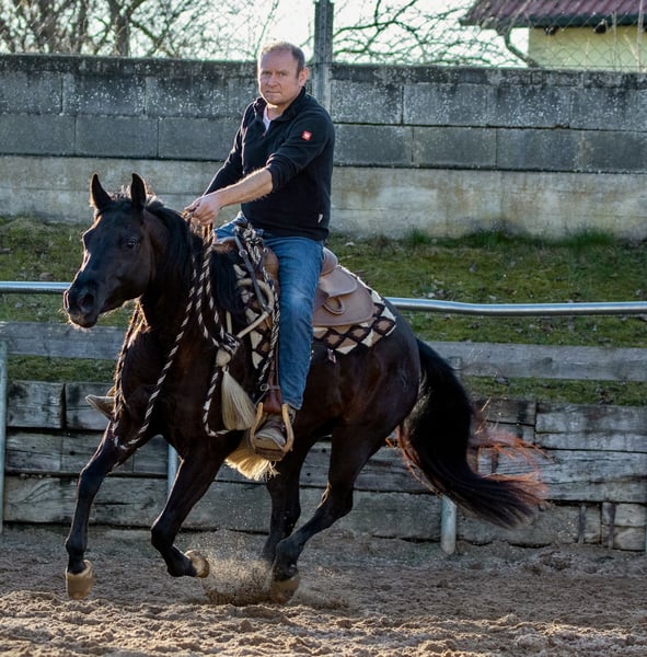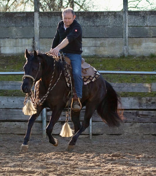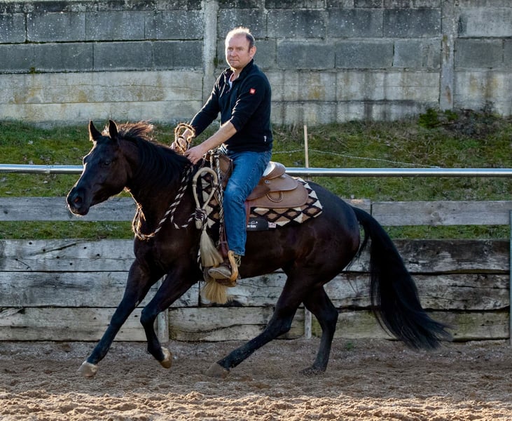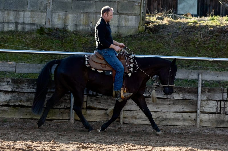 Verkaufe eine elegante American Quarter Horse Stute, geboren im Jahr 2022. Die wunderschöne Rappstute überzeugt durch ihre typvollen Linien und ihr freundliches Wesen. Sie ist speziell für den Reining-Sport ausgebildet und zeigt bereits vielversprechende Ansätze in diesem Bereich. Dank ihrer guten Grundausbildung und ihres angenehmen Charakters ist sie sowohl für ambitionierte Reining-Reiter als auch für Einsteiger geeignet, die ein zuverlässiges und talentiertes Pferd suchen. Diese Quarter Horse Stute besticht durch ihre kräftige Konstitution, ihre schnelle Reaktionsfähigkeit und ihre Bereitschaft, Neues zu lernen. Sie ist gut geritten, aufmerksam und zeigt eine ausgeprägte Nervenstärke, was sie zu einem vielversprechenden Partner für den Turniersport oder die Freizeitgestaltung macht. Mia hat volles AQHA Papier und ist 6panel n/n Sie wird regelmäßig entwurmt, geimpft und dem Hufschmied vorgestellt. Anfragen bitte nur telefonisch unter 0172/9084423