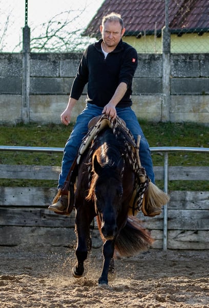 Vendo una elegante y hermosa yegua de American Quarter Horse, nacida en 2022. La preciosa yegua de color alazán destaca por sus líneas típicas y su carácter amistoso. Está especialmente entrenada para la disciplina de reining y ya muestra prometedores avances en este ámbito. Gracias a su buena formación básica y su temperamento amable, es adecuada tanto para jinetes de reining con experiencia como para principiantes que buscan un caballo confiable y talentoso. Esta yegua de Quarter Horse impresiona por su constitución robusta, su rápida capacidad de reacción y su disposición para aprender cosas nuevas. Está bien montada, atenta y demuestra una notable fortaleza nerviosa, lo que la convierte en una compañera prometedora para competiciones o para uso en ocio. Mia posee papeles completos AQHA y es 6-panel n/n. Se desparasita, vacuna regularmente y se presenta ante el herrador. Para consultas, por favor, solo por teléfono al 0172/9084423.