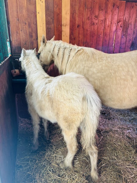 🍀FOR SALE 🍀 ⭐️ESSENZA D'ORO & il suo piccolo MANGO⭐️ Non sono solo due cavalli. Sono un legame, una storia iniziata insieme. ESSENZA D'oro, 4 anni, 1.45/1.48 al garrese. Bravissima a sella, CAVALLA FREDDA! (ha avuto il puledro a 3 anni), è una cavalla buonissima, dal carattere dolce e disponibile. È sanissima, e in ordine con documenti (ha documenti italiani APA, NON HA IL CERTIFICATO AMERICANO) e coggin test. Il suo puledro Mango, 2 mesi, è già super bravo: si lascia spazzolare, coccolare e gestire con serenità. È curioso, equilibrato e molto affettuoso. Vengono venduti esclusivamente insieme. Cerchiamo per loro una famiglia consapevole, presente e capace di donare amore e stabilità, perché meritano una casa vera. No curiosi, no affaristi, no perditempo. Solo persone seriamente interessate e responsabili. POSSIBILITÀ DI TRASPORTO IN TUTTA ITALIA Zona Bergamo Per ulteriori informazioni 3917059140. (NON RISPONDO A MESSAGGI)