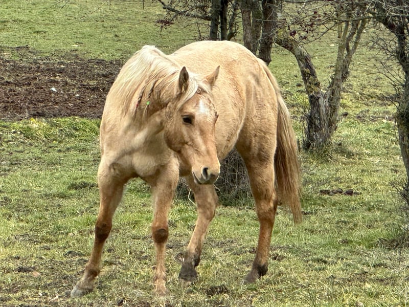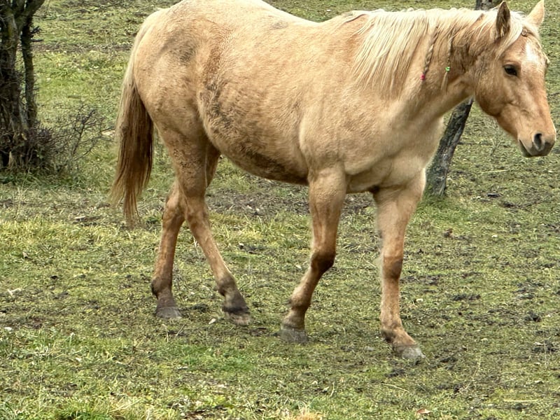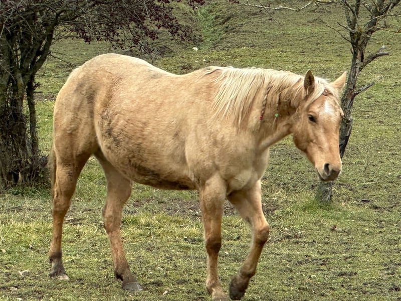 Ecco il testo dell'annuncio: --- **American Quarter Horse mare, born in 2021, Dunalino, standing approximately 148 cm at the withers.** This lovely young mare is a true reflection of the versatile and reliable Quarter Horse breed. With her friendly temperament and well-ridden nature, she is suitable for riders of various levels. She enjoys taking walks and is easy to handle, making her an excellent choice for those looking for a trustworthy partner for leisure riding or light work. Her striking Dunalino coat adds to her charm and presence in the arena or on the trail. A promising prospect for anyone seeking a well-bred, good-minded mare with a solid foundation and a bright future ahead.