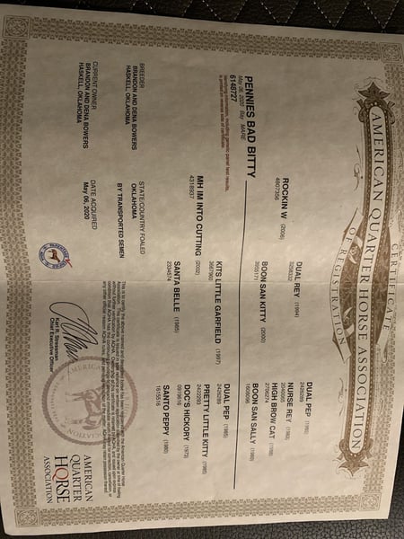 "AVAILABLE ON ONLINE HORSE AUCTION AT www DOT PlatinumEquineAuction DOT com BIDDING OPEN NOW thru SUNDAY | FEBRUARY 22ND! *Final price will be determined on auction site* CONSIGNOR CONTACT INFO: Max White 334-332-5128 LOCATION: Dadeville, AL This beautiful 5-year-old bay mare is the total package—athletic, well-built, and effortless to ride. She has a calm, easy-going demeanor with the talent and strength to go any direction you choose. A rare combination of looks, brains, and ability that’s ready to be your next standout partner. Penny has been ridden outside penning, doctoring, and catching cattle. She isn’t bothered by much of anything and is very broke. She has had 90 days of training from a cutting horse trainer. She has been started heeling and breakaway roping. She is a granddaughter to Dual Rey and has a fancy set of papers to go along with her. She rides well in and outside of the arena and will stop and spin like you want. Penny is a very easy going to be around. She is easy to catch in a pasture, load on a trailer, and stands fine for a farrier.