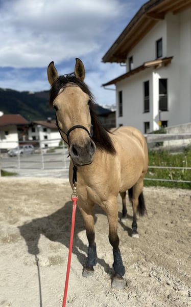 Schweren Herzens muss ich mich leider von meiner geliebten Quarter Stute trennen! Rosé liebevoll „Rosi“ genannt wird im Juni 5 Jahre alt. Sie ist seit 4 Jahren in meinem Besitz und wurde seitdem von mir (teilweise auch Unterstützung einer Trainerin) vom Boden aus trainiert. Dabei zeigte sich schon von klein auf, dass sie einen sehr hohen Bewegungsdrang hat und auch gearbeitet werden will. Sie ist immer die erste die am Zaun steht und regelrecht wartet, bis man etwas mit ihr macht. Charakterlich ist sie sehr liebevoll und intelligent aber dennoch auch immer für eine Diskussion bereit und fragt gerne mal nach 😅 Rosi stand bei mir Zuhause 24/7 im Offenstall mit 2 anderen Stuten, dort war sie eher rangmittig unterwegs. Sie befindet sich seit letztem Jahr in Profi Beritt, dort steht sie zur Zeit in einer Box. Für ihr zukünftiges Zuhause kommt für mich aber ausschließlich ein Offenstall oder Box mit täglichem Weidegang in Frage, da sie es von klein auf so kennt und dementsprechend auch ausgeglichener ist. Sie wurde unter dem Sattel erst spät gestartet, weil mir das persönlich sehr wichtig war. Unter dem Reiter zeigt sie sich sehr mutig und intelligent. Rosi benötigt aber aufgrund ihres Alters einen sehr selbstbewussten, geübten Reiter mit einer feinen Hand der ihr die nötige Sicherheit beim Reiten vermittelt. Sie war auch schon öfters alleine im Gelände unterwegs, was sie brav gemeistert hat mit entsprechender Sicherheit des Reiters. Leider harmoniert es bei uns nicht und ich kann ihr nicht die Sicherheit geben die sie vom Sattel aus benötigt. Deshalb muss ich mich, so schwer es mir auch fällt, von meiner Rosi trennen. Mit dem richtigen Menschen an ihrer Seite geht sie aber mit einem durch dick und dünn. Videos auf Anfrage Preis VHB Bei Fragen könnt ihr euch sehr gerne melden!