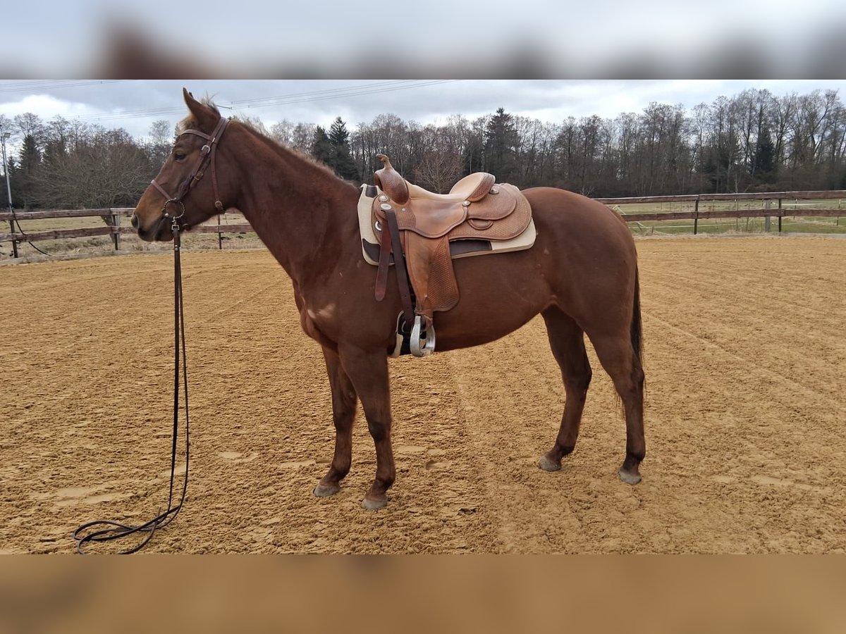 Joy Tee Rey ist eine bildhübsche Quarter Horse Stute, geboren am 21.03.2021, mit einem Stockmaß von ca. 153 cm. Sie ist korrekt gebaut, ausbalanciert bemuskelt und gesund, mit acht Röntgenbildern aus 2024. Resi ist 6-Panel n/n getestet und regelmäßig geimpft sowie entwurmt. Die Stute lebt im Offenstall in einer gemischten Herde, kennt aber auch Box mit Paddock. Charakterlich ist sie sensibel, menschenbezogen und neugierig, dabei eher ruhig und etwas faul. Sie möchte regelmäßig gearbeitet werden, braucht aber die richtige Dosis Druck bei der Arbeit, da sie bei zu viel Druck spannig wird. Nicht für Anfänger geeignet - ideal für erfahrene Reiter mit Jungpferdeerfahrung. Resi verfügt über eine solide Westerngrundausbildung, befindet sich jetzt in Vollberitt. Sie kennt Gelände, war als Handpferd und im Schritt unterm Sattel mit im Gelände. Die Stute wurde viel vom Boden aus gearbeitet. Dank ihrer sehr guten Cutting-Abstammung ist sie bestens für Cutting und Ranch-Klassen geeignet. Ihr Vater ist der erfolgreich geshowte Titanium Toy, ein Metallic Cat Sohn. Mütterlicherseits ist sie eine Dual Rey Enkelin. Mit AQHA-Papieren. Joy Tee Rey ist das perfekte Pferd für jemanden, der ein junges, herausforderndes Pferd fördern und weiterentwickeln möchte.