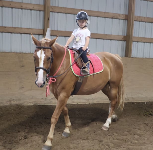 𝐉𝐀𝐍𝐔𝐀𝐑𝐘 ⭐️𝑨𝒍𝒍 𝑺𝒕𝒂𝒓 𝑳𝒊𝒏𝒆𝒖𝒑⭐️ Happening now thru MONDAY | JANUARY 26th - Available EXCLUSIVELY on HorseBid's website! For more details and to register visit: www.Horsebid.com CONSIGNOR CONTACT: Blackstone Stables 248-390-6831 LOCATION: Howell, MI BREED: Quarter Horse Haflinger Cross REGISTERED: No REGISTERED NAME: Rosie COLOR: Chestnut HEIGHT: 15.1 AGE: 5 GENDER: Mare Anyone looking for the perfect step up off your pony? Or a 1st horse who's not too big, but yet substantial underneath you? Meet Rosie she’s an adorable quarter horse Haflinger Cross mare. Rosie is a sturdy 15.1hh at 5 years old, although you wouldn't know that unless we told you. She is wise beyond her years. She is a stunning solid candy apple red in color with a flaxen mane and tail! She has a charming disposition and loves people and attention. She’s got excellent manners and will stand all day for grooming, tacking, and just being loved on. Rosie is a laid back kinda gal she’s got a nice walk, and an adorable little trot you can sit to all day, and a canter that you sink right into! You won't want to get off her as she's so comfortable. She has all the fun buttons, shes got amazing transitions. She will steep into the canter on either lead from the halt, she moves off seat and leg as well. Rosie knows lateral movements such as haunches in, how to yield to leg pressure, and how to turn on the forehand or haunches. Rosie has been ridden English western and bareback, by beginners big and small and by some advanced riders as well. She loves a good trail ride and is not one to shy from anything. Deep woods, open fields, water and roads all no issue. Rosie jumps right around full courses effortlessly. She will even swap her leads when asked! Woods water traffic big groups all no problem! She’s a safe and sensible girl! She's been exposed to many obstacles such as pool noodles, bridges, tarps and has even carried the flag. Rosie has attended several schooling shows and was fantastic. She is also broke to drive and has been used in a team. Rosie will excel in a home with lots of attention. She loves to jump and trail ride. She's the perfect steep up off a pony or a stellar 1st horse for someone wanting a mount who's not to big. We think she would be a blast in the hunt field as well!! Give me a call or txt 248-390-6831 to meet her! Rosie lives in Howell, MI 48855