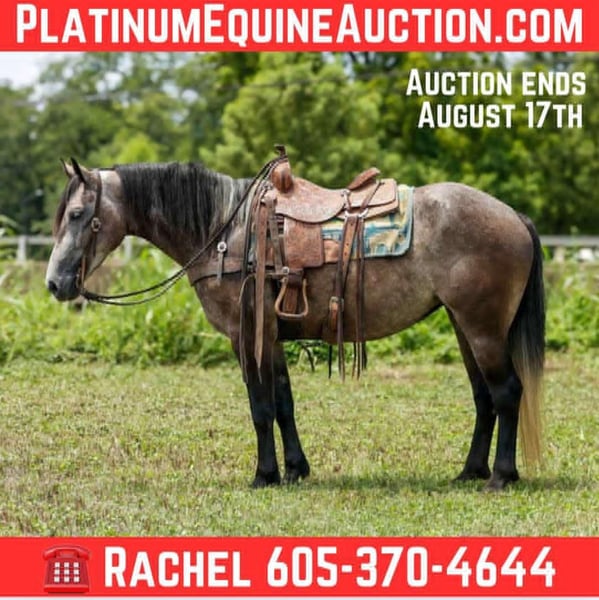 ONLINE AUCTION Place your bids at www.PlatinumEquineAuction.com Starting Bid $3500 Auction ends August 17th, 2025 Need a new saddle? Check out White Rock Saddles on our website or Facebook Rose is a 4 year old gray draft cross (1/2 Percheron — 1/2 QH) mare standing 15.2 hands tall. If you’re looking for a mare with the sweetest personality, that is smart and always aims to please here she is! Rose has a nice lope in the arena, she has smooth transitions and has a lot of ability inside and out! Rose is great on the trails, goes through water, different terrain and over obstacles. She has been used around cattle for being ranch work such as gathering, penning and even sorting! She will ride out alone or in a group and even has been rode in town! At home she’s not your typical mare. She is not a boss mare, stands tied, loads, bathes. She’s easy going and an easy keeper! She stands for the farrier and doesn’t require stock! She is easy to catch and has a in your pocket personality! If you’re looking for gentle as well as athletic ability in a draft cross that is absolutely easy to get along with here she is! Call or text TR Livestock 605-370-4644 (Rachel) for more info! Located in Rusk TX, nationwide shipping available!ONLINE AUCTION Place your bids at www.PlatinumEquineAuction.com Starting Bid $3500 Auction ends August 17th, 2025 Need a new saddle? Check out White Rock Saddles on our website or Facebook