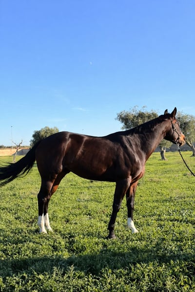 LA CUSTOMBLACKSPOT – AQH Stute – 4 Jahre Colonel Shining Gun x PC Customblack Widow Zum Verkauf steht LA CUSTOMBLACKSPOT, 4-jährige American Quarter Horse Stute mit großer Substanz, korrekt gebaut und gesund. 🐎 Herausragende Abstammung ✔️ Vater: Colonel Shining Gun ✔️ Mutter: PC Customblack Widow, das Erfolgspferd von Manuel Cortesi ✔️ Über 50.000 € Preisgeld, in Italien ungeschlagen ✔️ Einzige Stute aus der Mutterlinie (Mutter verstorben) ✔️ Sehr interessant auch als Zuchtstute Die Stute hat bisher keine Turnierstarts, ausschließlich aufgrund von Unstimmigkeiten zwischen den früheren Miteigentümern – nicht aus gesundheitlichen oder leistungsbedingten Gründen. 🔥 Ausbildung & Perspektive • Alle Reining-Manöver auf Plus-Niveau • Aktuell in Vorbereitung für das Derby 2026 • Extrem ruhiges, zuverlässiges Mindset • Sehr lernfähig und einfach im Training, auch für ambitionierte Amateure geeignet 📐 Exterieur • Große, kräftige Stute • Stockmaß ca. 1,60 m • Kristallblaue Augen 🩺 Gesundheit • Für jede tierärztliche Untersuchung garantiert • Papiere vollständig und in Ordnung 💰 Sehr attraktiver und marktgerechter Preis in Relation zu Abstammung, Ausbildung und Perspektive. 📍 Standort: Italien 🔒 Verkauf ausschließlich an seriöse und überprüfbare Käufer. 📩 Anfragen bitte mit vollständigen Angaben. LA CUSTOMBLACKSPOT – AQH Mare – 4 years old Colonel Shining Gun x PC Customblack Widow For sale LA CUSTOMBLACKSPOT, 4-year-old American Quarter Horse mare, big framed, correct, sound and well built. 🐎 Outstanding pedigree ✔️ Sired by Colonel Shining Gun ✔️ Out of PC Customblack Widow, the mare ridden by Manuel Cortesi ✔️ Over €50,000 in earnings, undefeated in Italy ✔️ Only female offspring from the dam (dam deceased) ✔️ Extremely interesting also as a broodmare prospect The mare has never been shown, solely due to disagreements between former co-owners, not for health or performance reasons. 🔥 Training & Potential • All reining maneuvers consistently at plus level • Currently in preparation for the 2026 Derby • Extremely calm, honest and reliable mindset • Very easy to train and quick learner, suitable also for ambitious amateurs under guidance 📐 Conformation & Appearance • Big, strong mare • Approx. 1.60 m (15.3 hh) • Crystal blue eyes 🩺 Health • Guaranteed for any veterinary examination • Full documentation in order 💰 Very attractive and competitive price, considering pedigree, training level and future sport/breeding potential. 📍 Located in Italy 🔒 Sale only to serious and verifiable buyers. 📩 Please contact with complete and clear information.