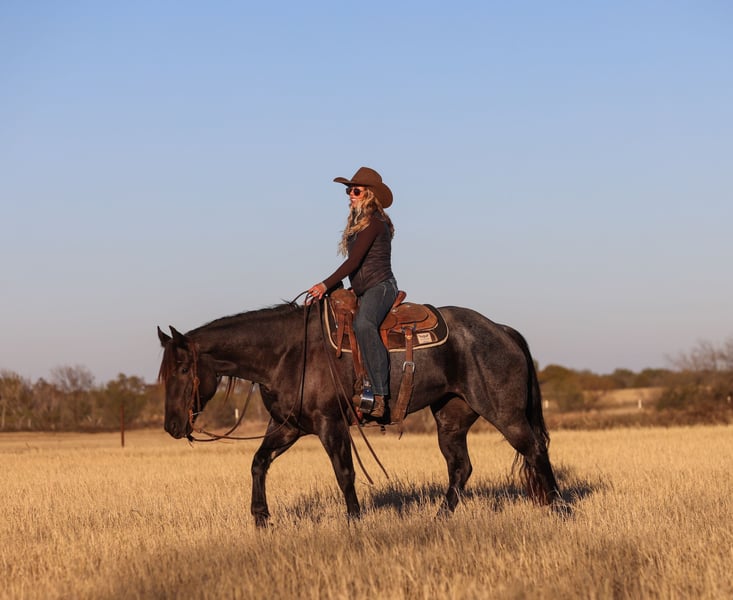 ⚜️𝐭𝐡𝐞 𝓔𝓵𝓲𝓽𝓮 𝐒𝐩𝐫𝐢𝐧𝐠 𝐂𝐥𝐚𝐬𝐬𝐢𝐜⚜️ Happening now thru MONDAY | APRIL 20th - Available EXCLUSIVELY on HorseBid's website! For more details and to register visit: www.Horsebid.com CONSIGNOR CONTACT: Bond Ranch & Performance Horses 615-854-6883 LOCATION: Ranger, TX BREED: QH REGISTERED: Yes REGISTERED NAME: Jakes Tiger Bar COLOR: Blue Roan HEIGHT: 15.3 AGE: 5 GENDER: Mare There are horses that feel ordinary — and then there are horses like Martha. A striking, 15.3 hh blue roan mare that carries herself with purpose. A true standout in any setting - Martha constantly has everybody’s attention. She is a money-earner in the NRCHA Limited Open Hackamore and has also been shown in both the NRCHA and RHAA, where she has proven herself to be consistent and honest. In the arena, Martha is every bit as refined and elegant as she looks. She carries a naturally low, attractive headset and stays soft, round, and connected through her body, making her a pleasure to ride for all levels of riders. She is responsive without being reactive, willingly tuning in to her rider and staying quiet and composed whether she is loping easy circles or stepping up to higher-level maneuvers. Her lope is slow, cadenced, and exceptionally comfortable, with a smooth rhythm that makes her feel effortless to sit. She has a deep, correct stop, beautiful transitions, and performs flying lead changes with balance and finesse — the kind of mare that feels both fancy and user-friendly every time you step on her! Martha is just as enjoyable outside as she is in the arena — the kind that makes ranch work and trail miles genuinely fun. She has years of experience gathering, sorting, doctoring cattle outside and dragging calves to the fire. Martha has been lightly started in the heading and is quiet and settled in the box, showing natural rate and feel. Out on the trail she is relaxed and confident, rides well around dogs and cattle, and stays steady and level-headed no matter what the day brings. Whether she continues in the show pen, steps into versatility and ranch events, or becomes a premium personal saddle horse, she has the foundation, consistency, and class to excel wherever she is asked. Elegant, talented, and genuinely enjoyable to be around — Martha is the kind of mare that elevates any program. We invite you to come see for yourself what makes her so truly special! Martha has a health exam and full set of clean x-rays on file and is UTD on vaccines, deworming, dental and farrier work. For any questions, please call or text Morgan at 615-854-6883.