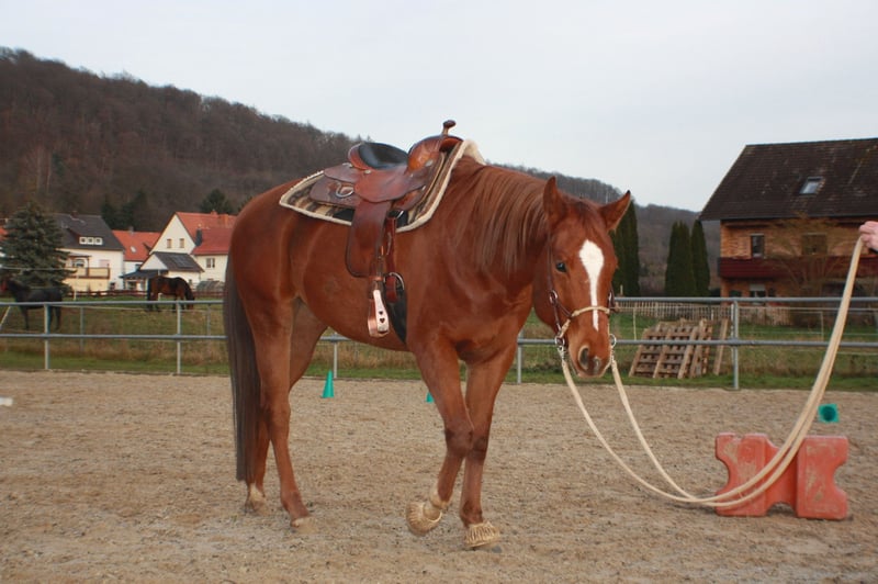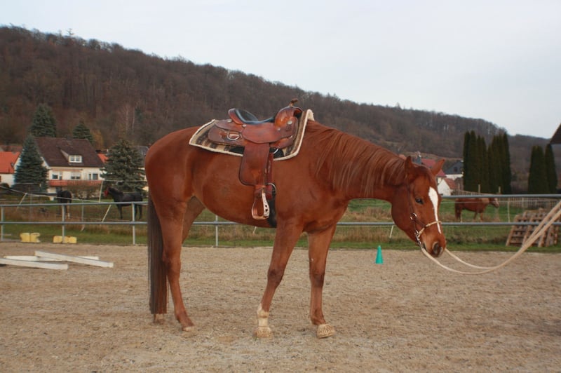 Kruzi „Kruzinintothenite“ ist eine wunderschöne 4-jährige Quarter Horse Stute mit AQHA-Papieren und einem Stockmaß von ca. 1,62 m von KEEP ON KRUZIN x ITS MY NITE. Sie überzeugt nicht nur durch ihre starke Pleasure- und Allround-Abstammung, sondern ganz besonders durch ihren lieben, ehrlichen und unerschrockenen Charakter. Kruzi ist angeritten in Schritt und Trab, dabei stets motiviert, aufmerksam und bemüht, ihrem Reiter zu gefallen. Zusätzlich habe ich mit ihr schon an Bodenarbeitskursen teilgenommen, die sie sehr brav, konzentriert und vorbildlich gemeistert hat. Auch hier zeigte sie sich lernwillig, nervenstark und kooperativ. Sie geht problemlos alleine ins Gelände, ist brav beim Hufschmied, verladefromm und zeigt sich auch in neuer Umgebung stets gelassen und zuverlässig. Kruzi hat vollständig AQHA Papiere,einen Equidenpass und eine aktuelle AKU. Sie kennt Straßenverkehr, Landmaschinen, Hunde, Katzen, Schafe und Kühe. Auch von Kindern lässt sie sich problemlos handeln. Kruzi stand bereits in Boxenhaltung als auch Offenstallhaltung und ist dabei eher rangniedrig, wodurch sie sich gut in bestehende Herden integriert. Aufgrund von Zeitmangel durch Änderungen in meinem Privatleben werde ich Kruzi leider nicht mehr gerecht und kann nicht weiter ausbilden. Aus diesem Grund habe ich mich schweren Herzens zu diesem Schritt entschieden. Durch ihre sehr gute Abstammung und ihre tollen, flachen Gänge eignet sie sich optimal als Nachwuchspferd für den Sport, insbesondere für Pleasure, Allround und Trail, ebenso als zuverlässiger Freizeitpartner. Auch für die Zucht ist sie aufgrund ihres wirklich guten Papiers sehr interessant- Im täglichen Umgang ist sie menschenbezogen, nervenstark und macht einfach jeden Tag Freude. Ich gebe sie nur in gute, verantwortungsbewusste Hände ab, die ihr weiteres Potenzial zu schätzen wissen. Videos an der Longe und unterm Reiter sind vorhanden.
