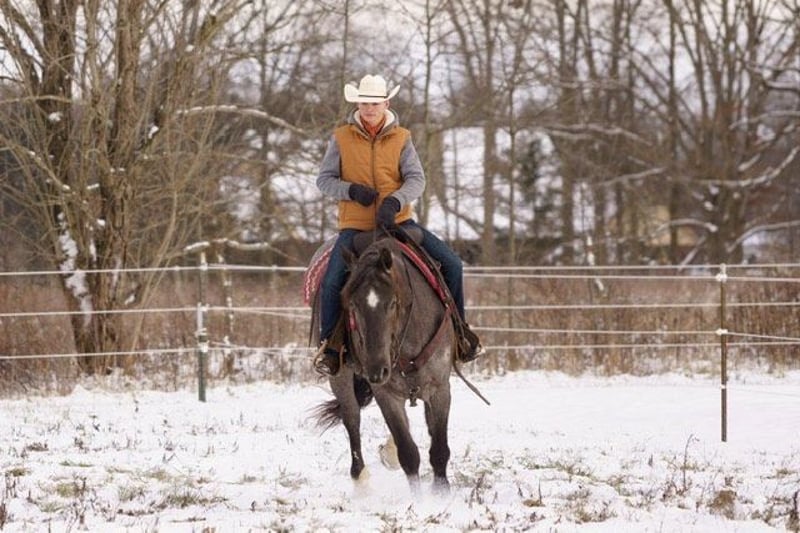 ONLINE AUCTION Place your bids at www.PlatinumEquineAuction.com Starting Bid $3500 Auction ends February 3rd, 2025 Need a new saddle? Check out White Rock Saddles on our website or Facebook! Wow take a look at Pearl, 4 year old, true blue roan Percheron x Quarter horse crossbred mare. She stands 15.3 hands tall and is very well broke to ride and lightly started driving. She’s been on our farm for just over a year and a half and has been a pleasure to have around, she’s been quiet minded and easy going mare with a puppy dog personality from day one. Pearl is the perfect trail partner and has been a go to horse for beginners this past summer. She crosses creeks, logs, and any trail obstacle that crosses her path. Pearl is content to ride out alone or in a group. You’ll never know that she’s a mare because she acts much more like a gelding and is content to be at the bottom of the pecking order. She neck reins, moves off leg pressure, and will ride around bridless. She’s built right and has good feet. Pearl stands great to groom, tack, clip and bath. She’s great for the farrier, loads with ease, and easily adapts to new environments. She is 100% Traffic safe and sound and has no vices. For more information, pictures, or videos contact Big Rock Stables Matt 330-766-8208 We encourage you to come try her out! ONLINE AUCTION Place your bids at www.PlatinumEquineAuction.com Starting Bid $3500 Auction ends February 3rd, 2025 Need a new saddle? Check out White Rock Saddles on our website or Facebook!