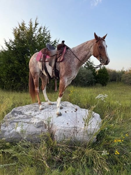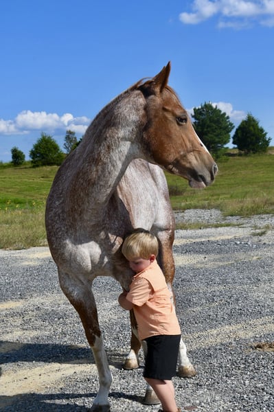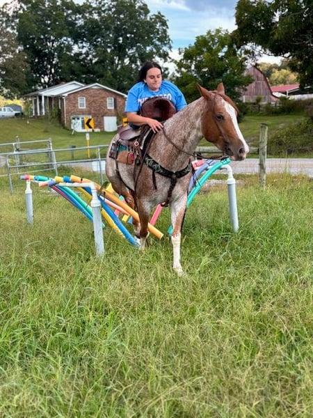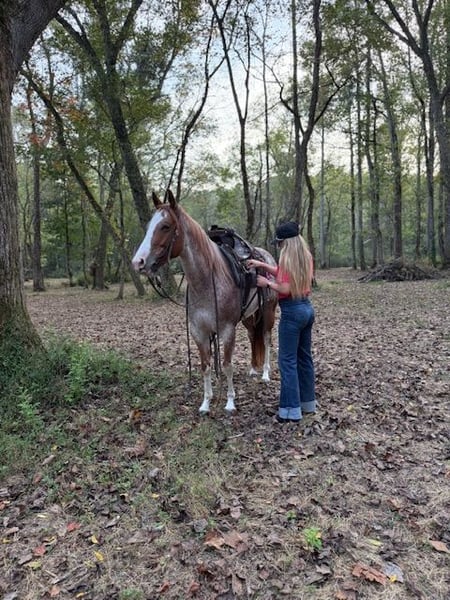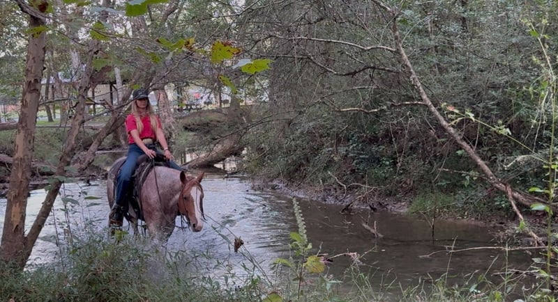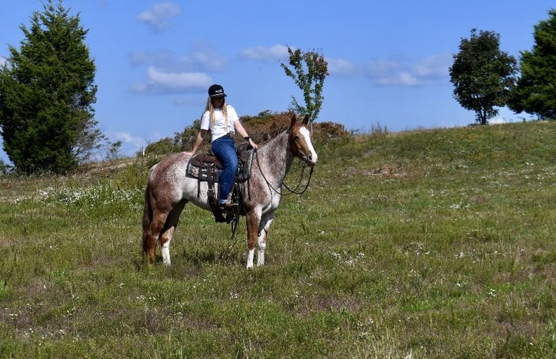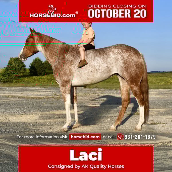♦️ 𝐭𝐡𝐞 𝐀𝐌𝐄𝐑𝐈𝐂𝐀𝐍 𝓕𝓪𝓵𝓵 𝓒𝓵𝓪𝓼𝓼𝓲𝓬 ♦️ Happening now thru MONDAY | OCTOBER 20th - Available EXCLUSIVELY on HorseBid's website! For more details and to register visit: www.Horsebid.com CONSIGNOR CONTACT: AK Quality Horses 931-261-1679 LOCATION: Pikeville, TN BREED: Quarter Horse REGISTERED: No COLOR: Red Roan HEIGHT: 14.2 AGE: 5 GENDER: Mare Laci has brought so much joy to my family and there are many things to say about her. At 5 years old Laci exceeds all expectations and never finds anything to raise her head over. She is the type that speaks for herself and you just have to meet her to understand what an outstanding mare she is. My 4 year old son takes Laci out to play by himself with no concerns from me. These two lay in the grass, he leads her around everywhere he goes, and he spends hours grooming Laci. Aside from her gentle and safe ground manners she is an absolute dream to ride. Laci is a wonderful trail mount; she is smooth, steady, and so trustworthy. There isn’t anything that has spooked her in the woods or on the highways. I often ride out by myself and she never looks for a friend or minds being alone. We have spent several weekends on wagon trains where she stayed on a high line and in temporary fences. On these rides she can lead, follow, or ride in the middle, she doesn’t mind where she is; she’s just happy to be pleasing someone. Laci has spent her fair share of days working the stockyards pushing and penning cattle. She side passes to the gates and stays level headed. Helping out in the pasture has been a huge part of her days and she always held anything she was dallied to. If you want to spend your weekends in the arena, Laci has all of the buttons you need to excel in ranch riding, English, or trail obstacles. She catches her leads, has a beautiful transition into a canter from a walk, trot, or stand still. Laci carry’s a level head or will break at the poll. She has a steady jog that can be extended into a trot easily. She neck reins, side passes, and backs with no fuss. You do not have to be an experienced horse owner to get along with Laci. Her consistency of gentle and quiet ensures safety for anyone to learn. Laci has zero vices and is 100% sound. I would love to place Laci in her forever home, please give me a call with any questions you may have and come out to meet her! 931-261-1679.