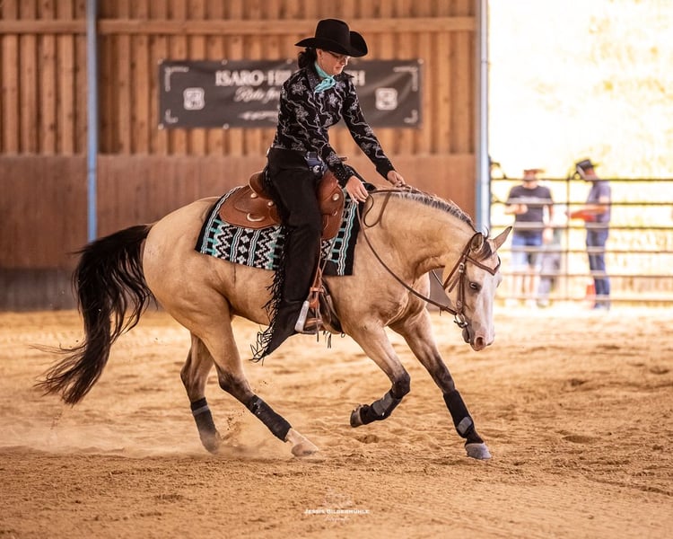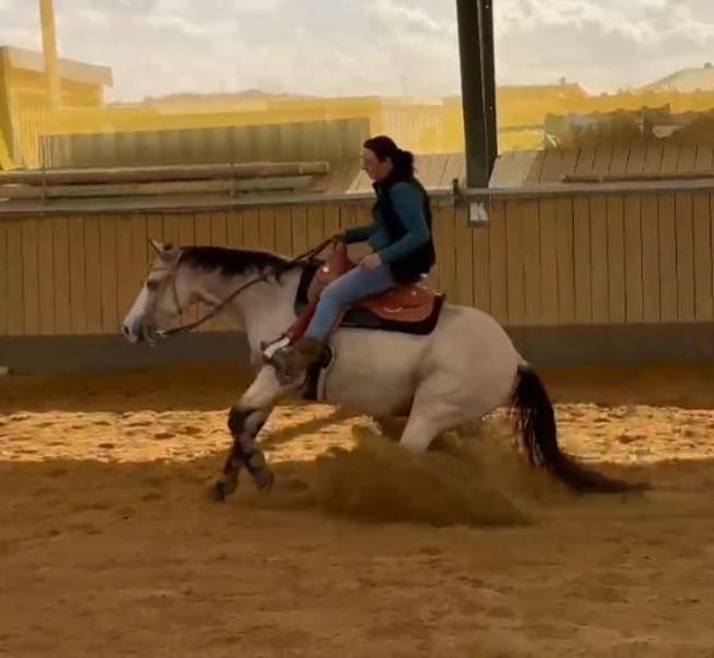 Aufgrund von Zeitmangel habe ich mich entschlossen, meine Stute zu verkaufen. Sie wurde von mir ausgebildet und bereits auf kleineren Turnieren geshowt. Sie beherrscht alle Reining-Manöver, welche allerdings noch ausbaufähig sind. Auch im Gelände ist sie problemlos zu reiten. Sie ist gesund, verträglich mit anderen Pferden, wird regelmäßig dem Schmied vorgestellt und geimpft. Sie hatte bereits ein Fohlen und wäre auch in Zukunft für die Zucht interessant. Ihr Papier lässt keine Wünsche offen. Näheres gern per WhatsApp 01727462911. Bitte nur ernst gemeinte Anfragen!