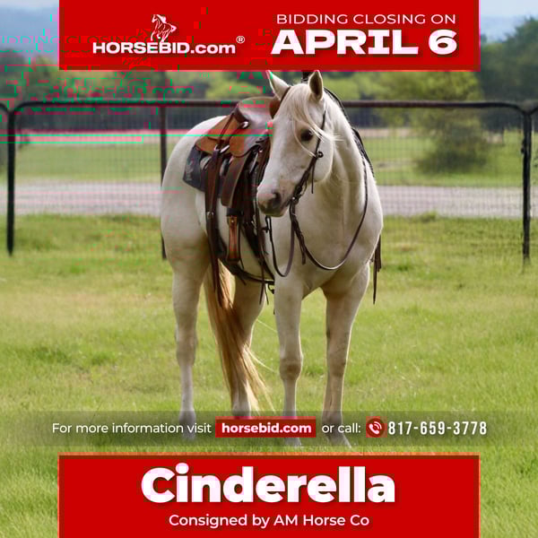 🌟𝑨𝒑𝒓𝒊𝒍 𝐀𝐋𝐋 𝐒𝐓𝐀𝐑 𝐋𝐈𝐍𝐄𝐔𝐏🌟 Happening now thru MONDAY | APRIL 6th - Available EXCLUSIVELY on HorseBid's website! For more details and to register visit: www.Horsebid.com CONSIGNOR CONTACT: AM Horse Co 817-659-3778 LOCATION: Mineral Well, TX BREED: AQHA REGISTERED: Yes REGISTERED NAME: Fancy’s Golden Taffy COLOR: Palomino HEIGHT: 15 AGE: 6 GENDER: Mare Fancy Golden Taffy, “Cinderella,” is the kind of mare everyone hopes to find. She is a true all-around mare with the looks, athletic ability, mind, and disposition to make her stand out wherever she goes. Flashy, sane, safe, and dependable, Cinderella is the total package. She has been used in every aspect of ranch work and knows what a day’s work is all about. She will open and close gates, rope and drag cattle with ease, and she will even park out anywhere to make getting on simple and convenient. She is gentle, quiet, and easy to be around, with the kind of kind nature that makes her enjoyable every single day. Cinderella has also been hauled to the Chuckwagon races several times and has been used as a trail horse, taking new places and busy atmospheres in stride. Very little bothers her, and she handles herself with confidence and composure. On top of that, she is patterned on the barrels, giving her even more versatility. She is safe, with the kind of steady, trustworthy demeanor that is hard to come by. If you are looking for a mare you can use all day, enjoy in every setting, and be proud to own, Cinderella is the one for you. We are located in ♦️Mineral Wells Texas♦️but have reputable haulers that go all over the country, including Hawaii and Canada. Give me a call or text and I’d be happy to answer any questions! 817-659-3778