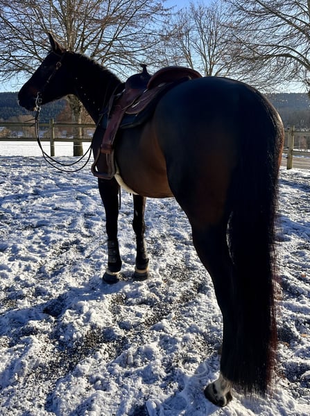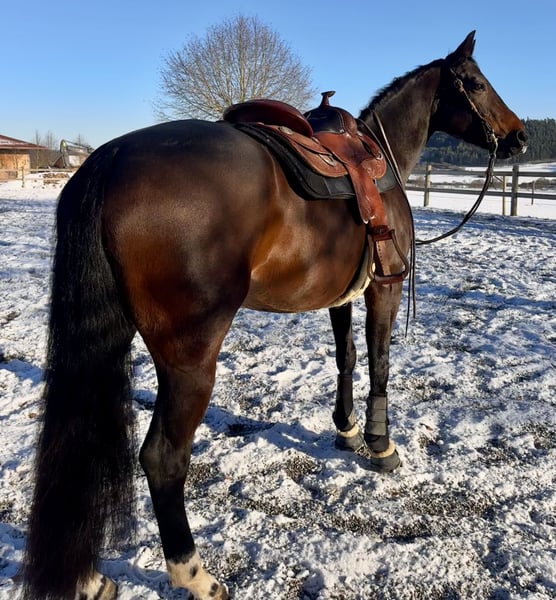 Meine Quarter Horse Stute Holly 💕 (geb. 06/2020, Dragon Jac x Jays Perfect Cee, 1,56 m) sucht auf diesem Weg einen besonderen Menschen, bei dem sie ankommen und weiter wachsen darf 🤍 Holly steht im athletischen Typ 💪🐎 und bringt ordentlich Go mit 🔥. Sie ist aufmerksam, fein und sensibel – eine Stute, die zuhört, mitdenkt und eine ehrliche, feine Verbindung zum Menschen sucht ✨ Sie wünscht sich einen Menschen, der mit Geduld, Klarheit und Gefühl arbeitet. Ruhige Führung, klare Strukturen und sanfte Kommunikation geben ihr Sicherheit 🤎. Wer Spaß daran hat, mit einem Pferd partnerschaftlich zu arbeiten, gemeinsam zu wachsen und Vertrauen zu entwickeln, wird in Holly eine außergewöhnliche Partnerin finden 💫 Holly wurde schonend angeritten, kennt und liebt die Bodenarbeit und wurde in Richtung Allround ausgebildet ✨. Sie kennt das Gelände , war auf Wanderritten unterwegs und wurde zweimal auf Turnieren vorgestellt 🎀. Sie war immer gesund, der Zahnarzt war vor kurzem ebenfalls da. Holly ist kein Anfängerpferd, zeigt keine Unarten und ist für Menschen geeignet, die Erfahrung im Umgang mit sensiblen, motivierten Pferden haben. Aktuell steht sie in Boxenhaltung mit Paddock, ist barhuf und kennt den geregelten Stallalltag 🌾 💖 Platz vor Preis! Für Holly steht ein liebevolles, passendes Zuhause mit Zeit, Herz und Verständnis an erster Stelle – kein Notverkauf Der passende Sattel kann bei Bedarf miterworben werden 🙂 📩 Bei ernsthaftem Interesse freue ich mich über eine Nachricht Weitere Infos, Bilder und Videos gerne auf Anfrage 😊
