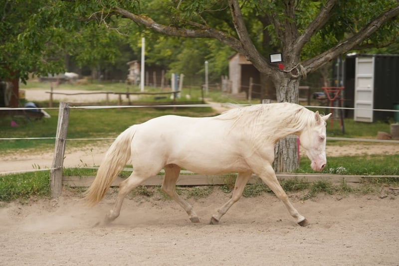 Topkwaliteit Cremello Splash Fokmerrie – Reining Royalty, Drachtig van Masked Gunman ✨ Op zoek naar nieuwe weiden ✨ Uitzonderlijke AQHA merrie uit 2018, gefokt door Pale Face Dunnit, uit een dochter van Wimpys Little Step. Deze opvallende cremello splash merrie is 5-panel negatief, goed bereden, vriendelijk en veilig zowel in de arena als op de trail. Ze is gezond, regelmatig bekapt, ontwormd, gevaccineerd en heeft al het bloedwerk up-to-date. Ze heeft al drie veulens geproduceerd, waarbij ze consistent het splash-gen doorgeeft. 🔸 Ze heeft een jaarling hengst homozygoot splash palomino – ter plaatse te bekijken, of foto's beschikbaar. 📍 Gelegen in Pákozd, Hongarije 💶 17.000 € 📩 Open voor serieuze aanvragen. Meer foto's, volledige afstamming, video's en aanvullende informatie beschikbaar op aanvraag. Hoogtepunten: • Elite reining afstamming: Pale Face Dunnit × Wimpys Little Step • 5-panel + IMM N/N ❗️ • Zeldzame cremello splash kleur – bewezen kleurproducent • Bereden, kalm en slim temperament • Bewezen fokmerrie: 3 veulens tot nu toe