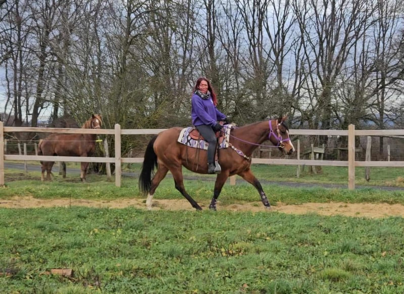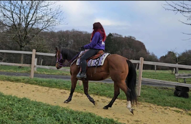 Jument Quarter « Simply Revolution » – Partenaire de loisirs avec cœur Âge : 6,5 ans Taille : environ 1,52 m Catégorie de prix : 6 500 € AKU : disponible ✨ Description : Cette jument Quarter de 6 ans séduit par son tempérament amical et sa nature détendue. « Simply Revolution » est parfaitement docile en main, très proche de l’homme et se montre fiable et volontaire sous la selle. Elle connaît aussi bien le travail en manège que les sorties tranquilles – en solo ou en groupe. 🐎 Idéal pour les cavaliers qui : recherchent une jument simple, jeune, fiable en tant que partenaire de loisirs et prête à progresser. Un joli cheval western de loisir, qui procure du plaisir ! 🩺 Nos chevaux sont régulièrement : – vermifugés – soignés par le maréchal-ferrant – contrôlés osteopathiquement 🛍 Boutique : Selle western, briderie & accessoires 🚛 Transport et équipement organisés à prix avantageux selon vos souhaits Notre service : ✅ 3 mois de droit d’échange ✅ Essai : 35 €, chaque cheval supplémentaire 25 € (facturés le jour même en cas d’achat) ✅ 100 € de remise immédiate pour retrait ou transport le jour même ✅ Conseils honnêtes et personnalisés 📞 Pour toute demande, merci de privilégier le téléphone : 0171 – 4001968 🕗 Disponible tous les jours de 8h à 20h ⚠️ Pas de mails ni WhatsApp ⚠️ Toutes les informations sont données à titre indicatif, sans garantie