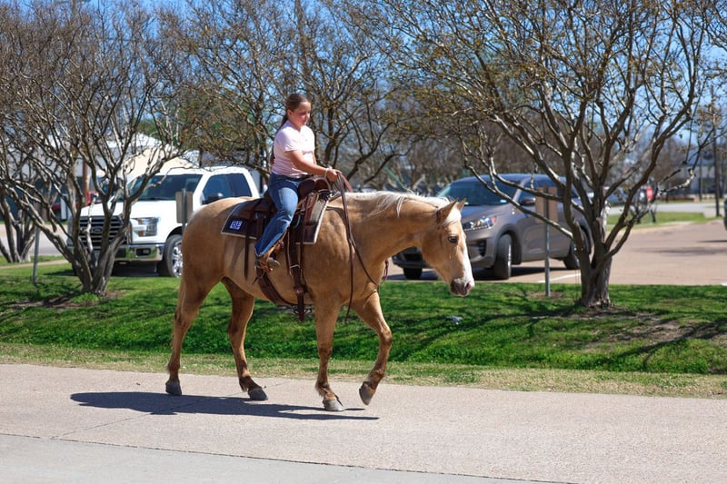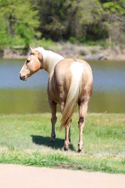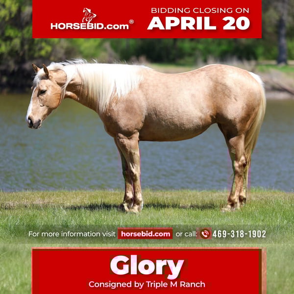 ⚜️𝐭𝐡𝐞 𝓔𝓵𝓲𝓽𝓮 𝐒𝐩𝐫𝐢𝐧𝐠 𝐂𝐥𝐚𝐬𝐬𝐢𝐜⚜️ Happening now thru MONDAY | APRIL 20th - Available EXCLUSIVELY on HorseBid's website! For more details and to register visit: www.Horsebid.com CONSIGNOR CONTACT: Triple M Ranch 469-318-1902 LOCATION: Talty, TX BREED: AQHA REGISTERED: Yes REGISTERED NAME: TUSK OF FAME COLOR: Palomino HEIGHT: 15.1 AGE: 7 GENDER: Mare Glory is a superstar horse!!! She is one of those ONCE IN A LIFETIME types!! 🌟 She is an AQHA registered stunning dappled golden palomino mare that is just 7 yr old and stands 15.1 hands tall. She is one of those impossible to find BOMBPROOF OLD FASHIONED FANCY BROKE ONES plus has the sweetest, old soul, been-there-done-that personality. Absolutely anyone can get along with this amazing mare. She rides the very best. Of course she has all the fancy buttons to spin around and slide to a stop. But she will go as fast or as slow as you want her to go. She is the kind you can really enjoy riding and know you can’t screw up. She is ABSOLUTELY SAFE and BROKE for anyone to ride. If you can sit on her you can ride her no matter your riding level or age. I MEAN ANYONE CAN RIDE HER and ABSOLUTELY DO ANYTHING THEY WANT ON HER. You can ride her once a month a once a year and she is the same. You can catch her fresh out of the pasture and go. Glory does not need to be tuned up or warmed up. She stands perfect to be saddled and mounted. She will let you use a mounting block, fence, or bucket to get on and off. SHE DOES NOT HAVE ANY BAD HABITS OR QUIRKS. She will cross water, cross bridges, has been rode in every kind of terrain. She is the true definition of a safe family horse. Glory is not scared of a hard days work. She has been used in a feed yard moving calves back and forth from pen to pen. She can slow lope on the hood of your pick up (a saying I hear a lot and perfectly described her perfect little hobby horse lope). She will side pass up to gate so you can open and close them off her back. She has had some roping done her to doctor the calves on the pens. Lightly started in the arena out of a box. This last year we have also played with her on the barrels. She is so smart, athletic, and talented. She picks up anything you show her. You really could go any direction with her. But she is also perfectly content being a good solid family ranch horse. She has the most gentle kind natured personality. To be around her is to love her. Glory is absolutely a favorite among everyone that meets her. I cannot express enough how safe she truly is. This mare wants to please and wants to take care of her rider. She has zero and I mean zero bad habits. You will not get hurt around this mare. Unless you are just drunk and fall off. She is a super easy keeper. Requires no maintenance of any kind. No special feed or supplements. She can go barefoot or put shoes on her. She has excellent hooves. She gets along great with other horses. She is not mean to other horses or marish. You can stall her or turn her out. Doesn’t matter to her. She sells 100% sounds with no issues. She did have a pre vet evaluation done included in the pictures. If you have anymore questions about her feel free to call. We would love to visit with you about her. We can help you arrange shipping anywhere. She is up to date on all vaccinations, worming, had her teeth checked, feet. She is ready to go to her new home to be loved and enjoyed. Don’t miss out on the one. These type amazing horses are sure hard to find.