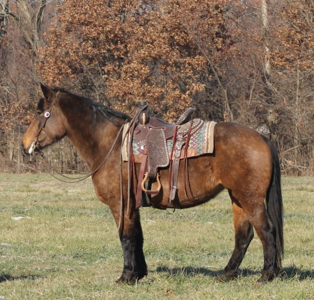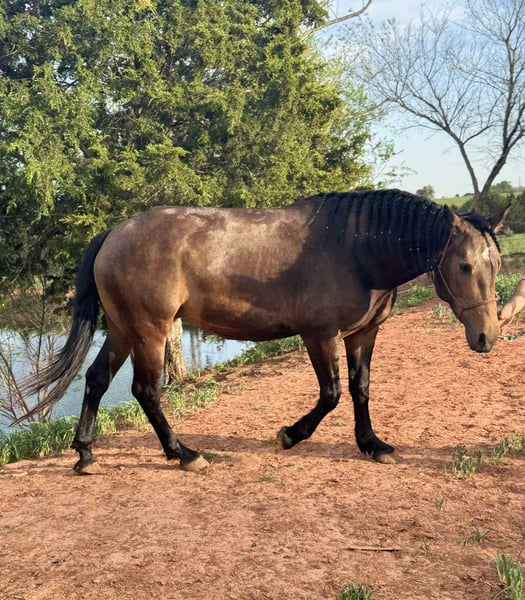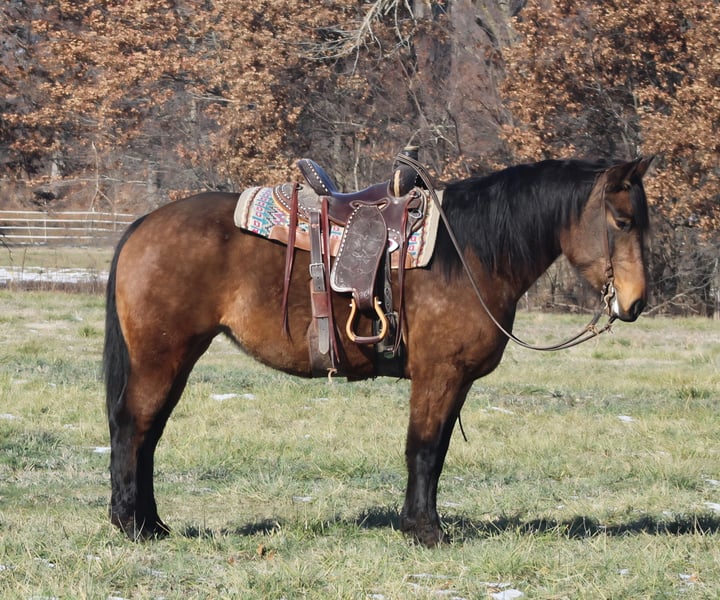 𝐉𝐀𝐍𝐔𝐀𝐑𝐘 ⭐️𝑨𝒍𝒍 𝑺𝒕𝒂𝒓 𝑳𝒊𝒏𝒆𝒖𝒑⭐️ Happening now thru MONDAY | JANUARY 26th - Available EXCLUSIVELY on HorseBid's website! For more details and to register visit: www.Horsebid.com CONSIGNOR CONTACT: Titus Equine 217 549 3803 LOCATION: Charleston, IL BREED: Qh Percheron Cross REGISTERED: No REGISTERED NAME: Mia COLOR: Buckskin HEIGHT: 15.2 AGE: 7 GENDER: Mare Mia is a 15.2 hand, 7 year old buckskin quarter horse Percheron cross mare that the whole family can enjoy. She is safe, sane, and honest, the kind you can trust day in and day out without any surprises. She has been used on the ranch, trail ridden, and taken to town, and she handles it all with a calm, steady mind. This mare is gentle enough for less experienced riders but has enough size, strength, and sense to be enjoyed by adults as well. She is sound in every way and stays level headed whether she is working, riding out, or just being handled around the barn. Mia is easy to get along with, easy to ride, and has the kind of disposition families look for when they want one horse everyone can use. If you are looking for a dependable, family-safe mare that is broke right and has been there and done that, Mia is one you can feel good about putting your kids, spouse, or friends on.